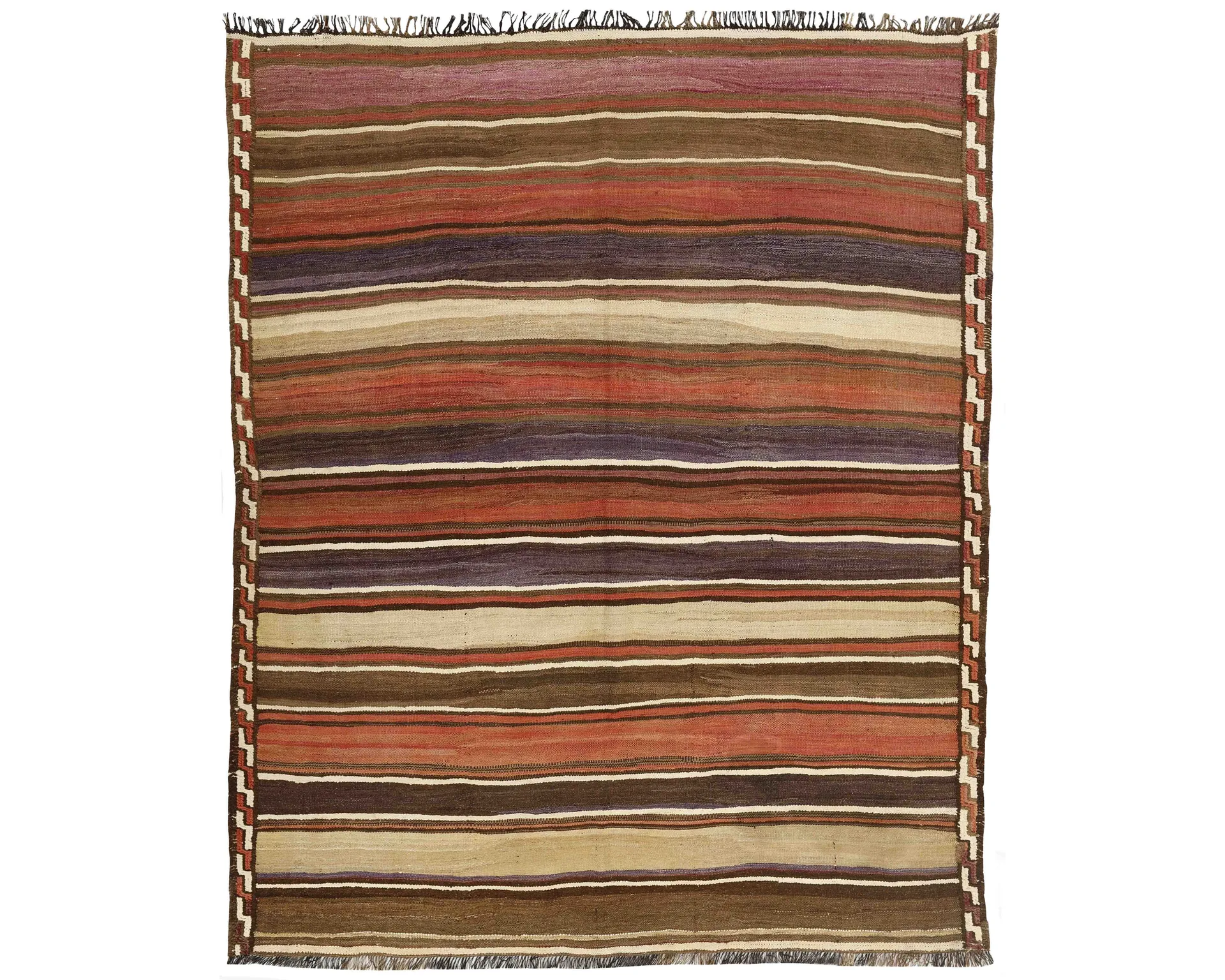 Denna handvävda matta kombinerar persiska mönster med den gamla flatvävstraditionen. Den är en vacker kombination av persiska element och modern stil. Dess geometriska mönster och varma färger gör denna typ av matta mycket populär i moderna hem. Oanvänd.