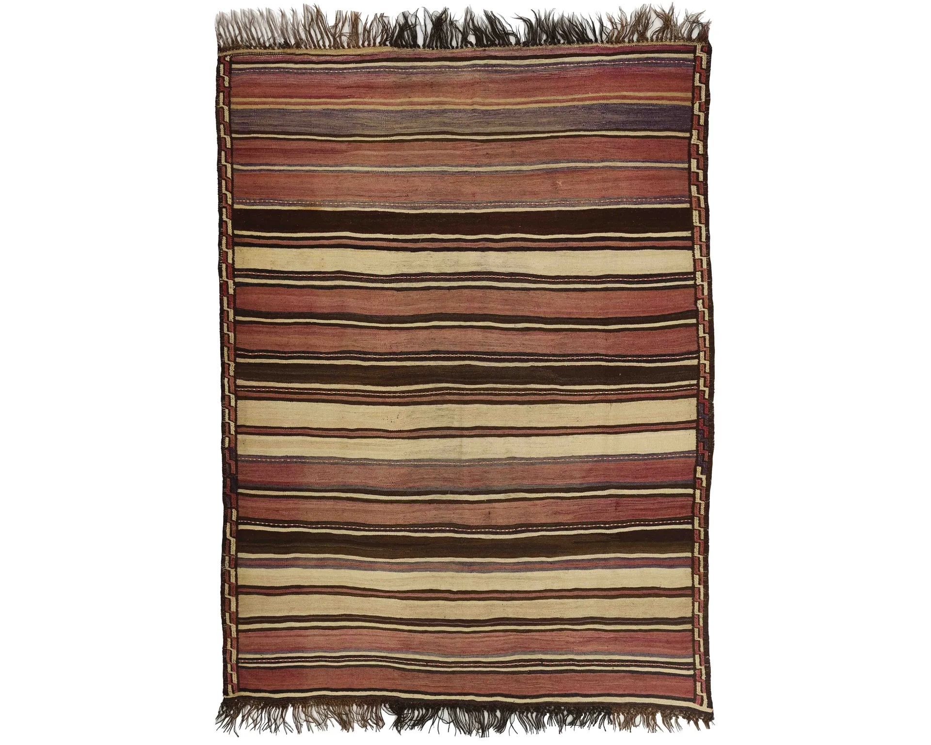 Denna handvävda matta kombinerar persiska mönster med den gamla flatvävstraditionen. Den är en vacker kombination av persiska element och modern stil. Dess geometriska mönster och varma färger gör denna typ av matta mycket populär i moderna hem. Oanvänd.