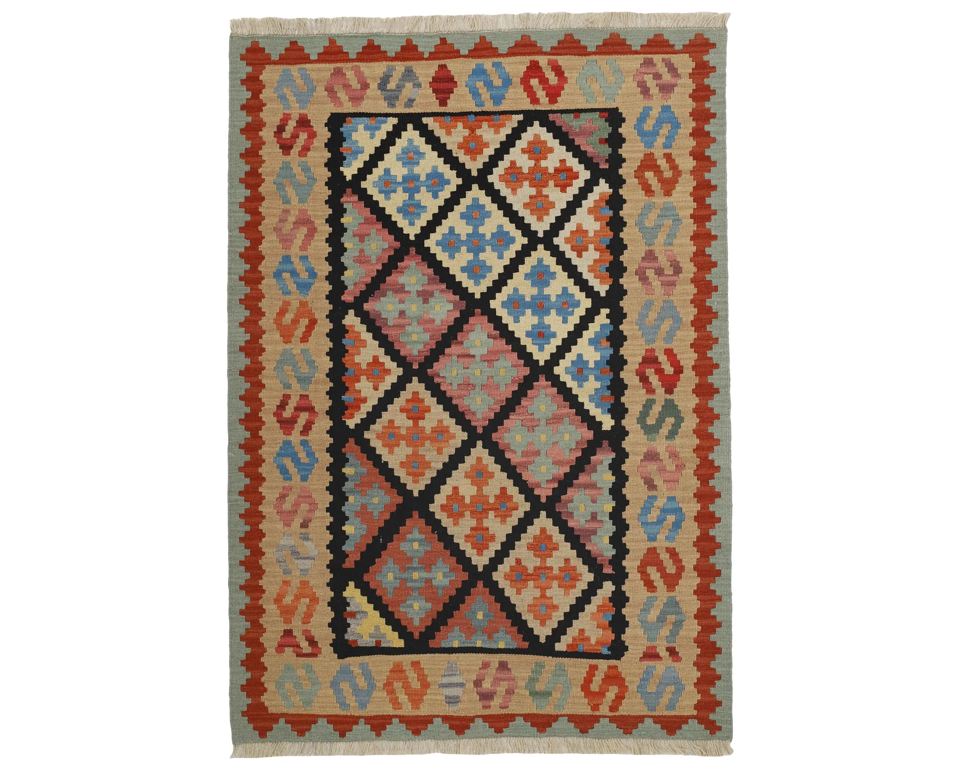 Kelim mattor är slätvävda ullmattor som tillverkas av nomadstammar i Persien. Dessa mattor tillverkas enligt traditionella handarbetsmetoder, vilket gör varje matta unik. Några av de mest kända Kelim stilarna är Seneh, Sumak, Fars och Gashghai, vilka alla har en naturnära färgpalett och geometriska mönster. Oanvänd.