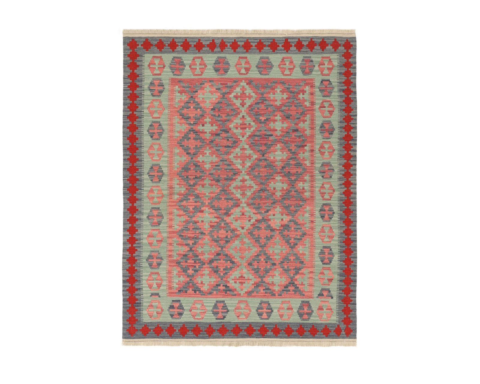 Kelim mattor är slätvävda ullmattor som tillverkas av nomadstammar i Persien. Dessa mattor tillverkas enligt traditionella handarbetsmetoder, vilket gör varje matta unik. Några av de mest kända Kelim stilarna är Seneh, Sumak, Fars och Gashghai, vilka alla har en naturnära färgpalett och geometriska mönster. Oanvänd.