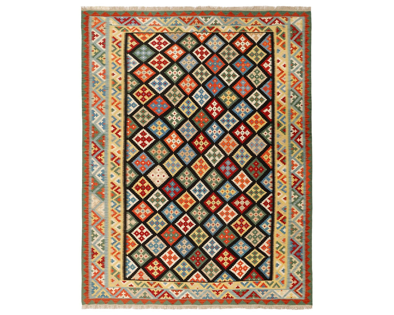 Kelim mattor är slätvävda ullmattor som tillverkas av nomadstammar i Persien. Dessa mattor tillverkas enligt traditionella handarbetsmetoder, vilket gör varje matta unik. Några av de mest kända Kelim stilarna är Seneh, Sumak, Fars och Gashghai, vilka alla har en naturnära färgpalett och geometriska mönster. Oanvänd.