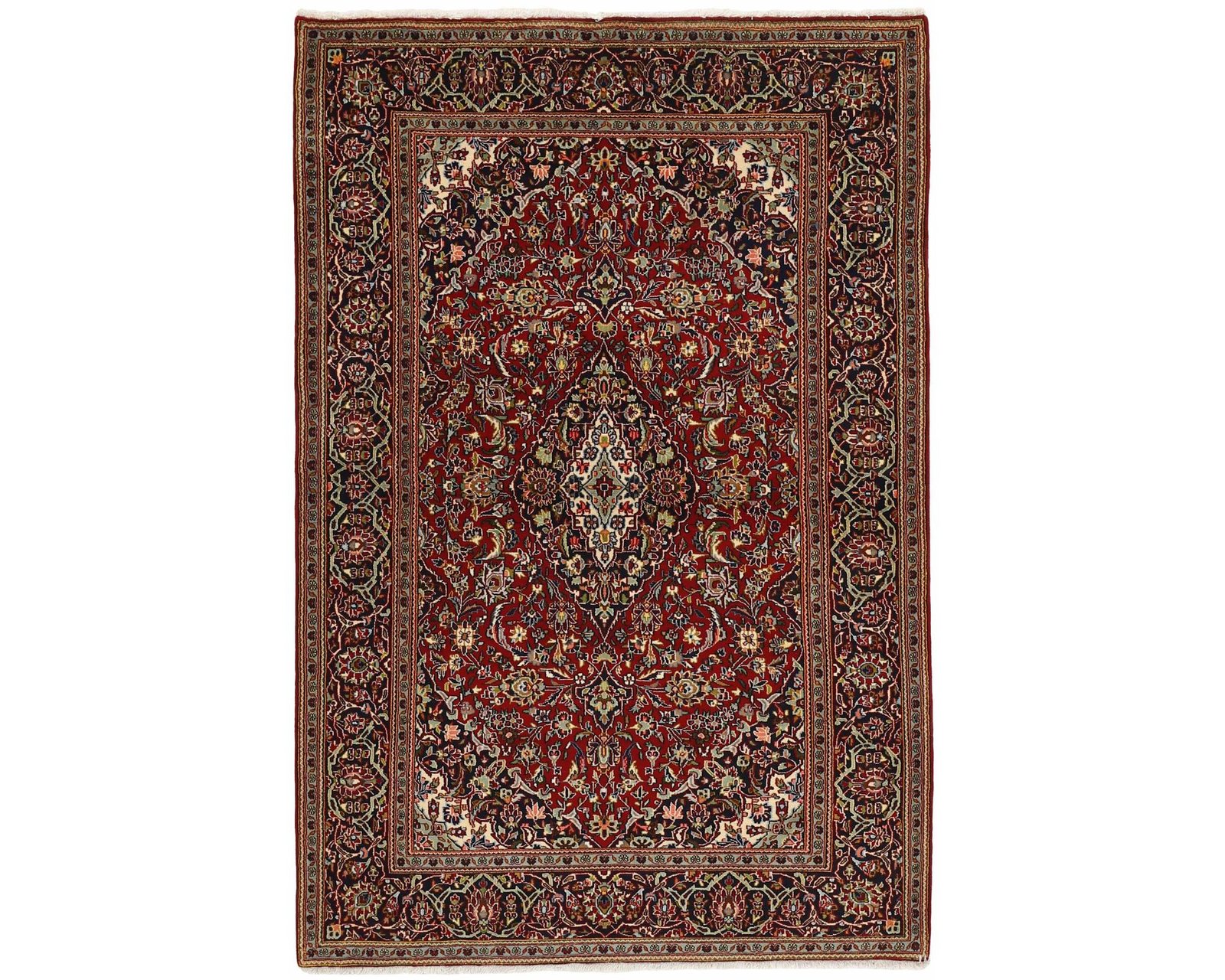 Keshan-mattorna är handknutna ullmattor som är kända för sina finstämda, heltäckande mönster med en central medaljong. Ytan är tätt fylld med blommotiv och slingrande rankor, medan kanterna ofta pryds av Herati-motiv och små rosetter. Vanliga färgkombinationer är en röd botten med blå medaljong, kompletterad av mjukare accenttoner. Knuttätheten varierar mellan 150 000 och 250 000 knutar per kvadratmeter. Oanvänd.