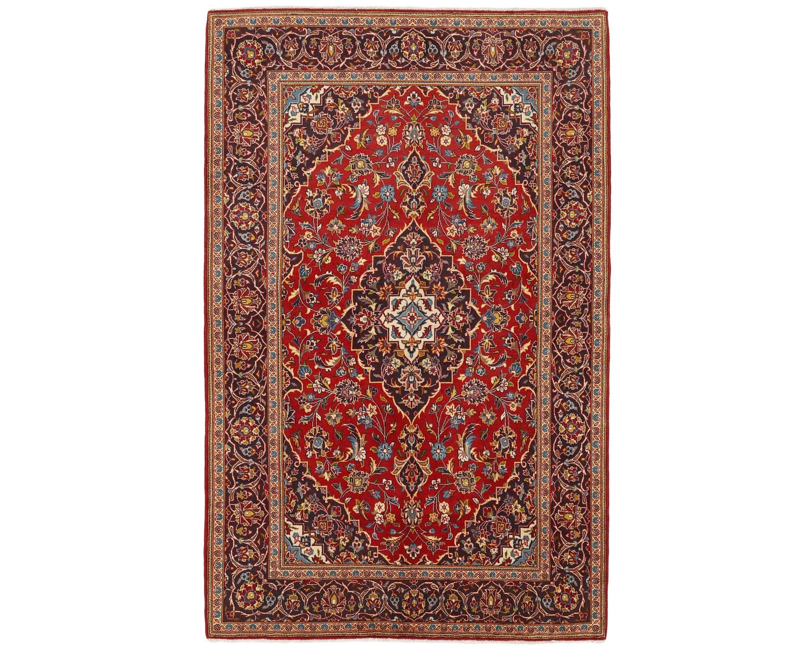 Keshan-mattorna är handknutna ullmattor som är kända för sina finstämda, heltäckande mönster med en central medaljong. Ytan är tätt fylld med blommotiv och slingrande rankor, medan kanterna ofta pryds av Herati-motiv och små rosetter. Vanliga färgkombinationer är en röd botten med blå medaljong, kompletterad av mjukare accenttoner. Knuttätheten varierar mellan 150 000 och 250 000 knutar per kvadratmeter. Oanvänd.