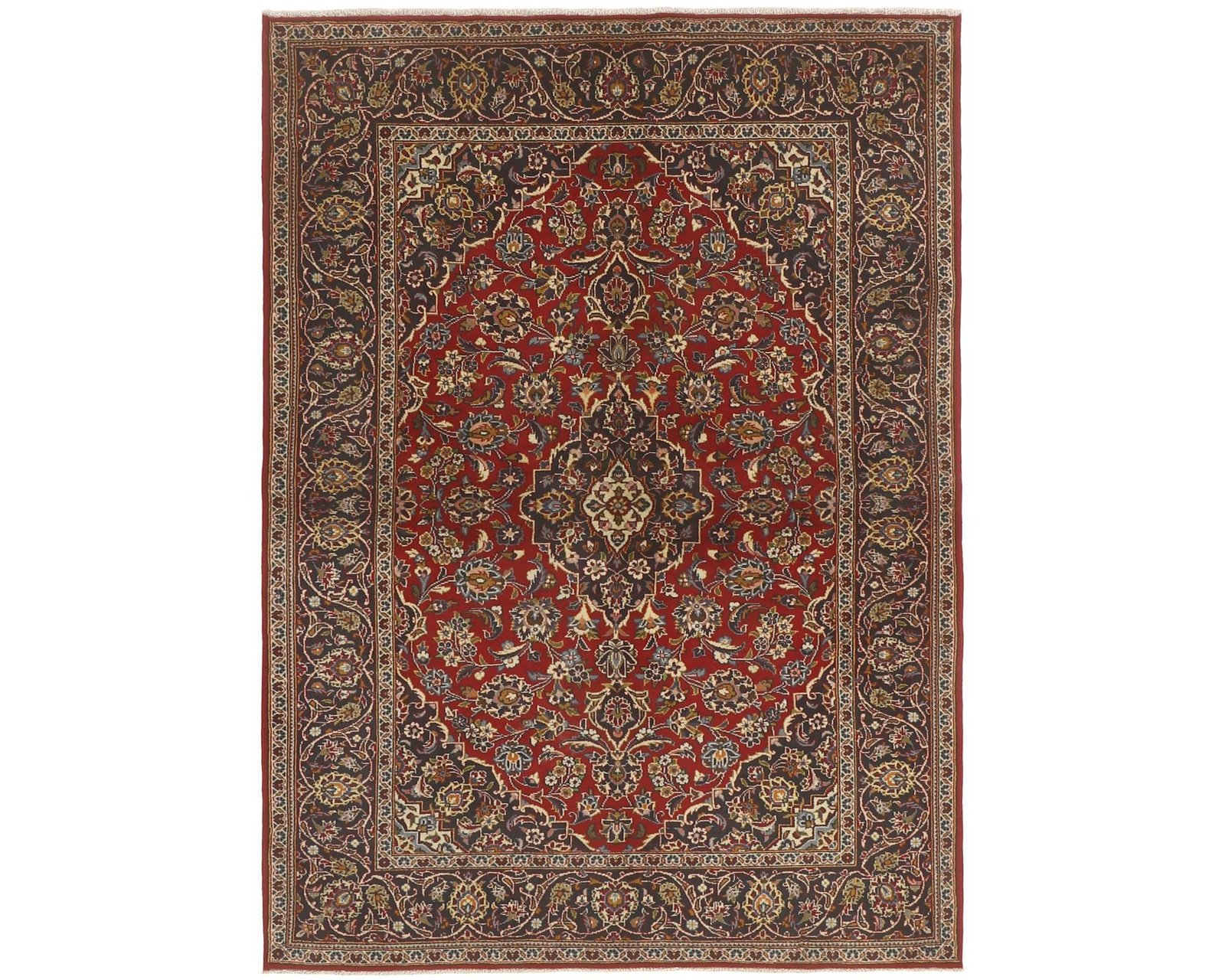 Keshan-mattorna är handknutna ullmattor som är kända för sina finstämda, heltäckande mönster med en central medaljong. Ytan är tätt fylld med blommotiv och slingrande rankor, medan kanterna ofta pryds av Herati-motiv och små rosetter. Vanliga färgkombinationer är en röd botten med blå medaljong, kompletterad av mjukare accenttoner. Knuttätheten varierar mellan 150 000 och 250 000 knutar per kvadratmeter. Oanvänd.