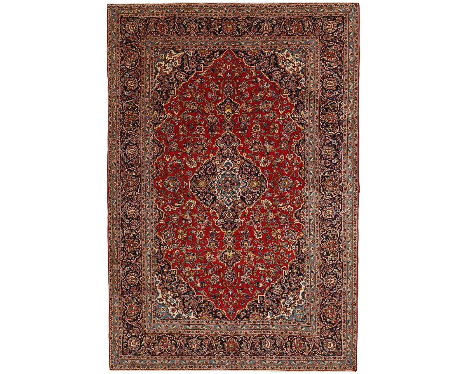 Keshan-mattorna är handknutna ullmattor som är kända för sina finstämda, heltäckande mönster med en central medaljong. Ytan är tätt fylld med blommotiv och slingrande rankor, medan kanterna ofta pryds av Herati-motiv och små rosetter. Vanliga färgkombinationer är en röd botten med blå medaljong, kompletterad av mjukare accenttoner. Knuttätheten varierar mellan 150 000 och 250 000 knutar per kvadratmeter. Oanvänd.