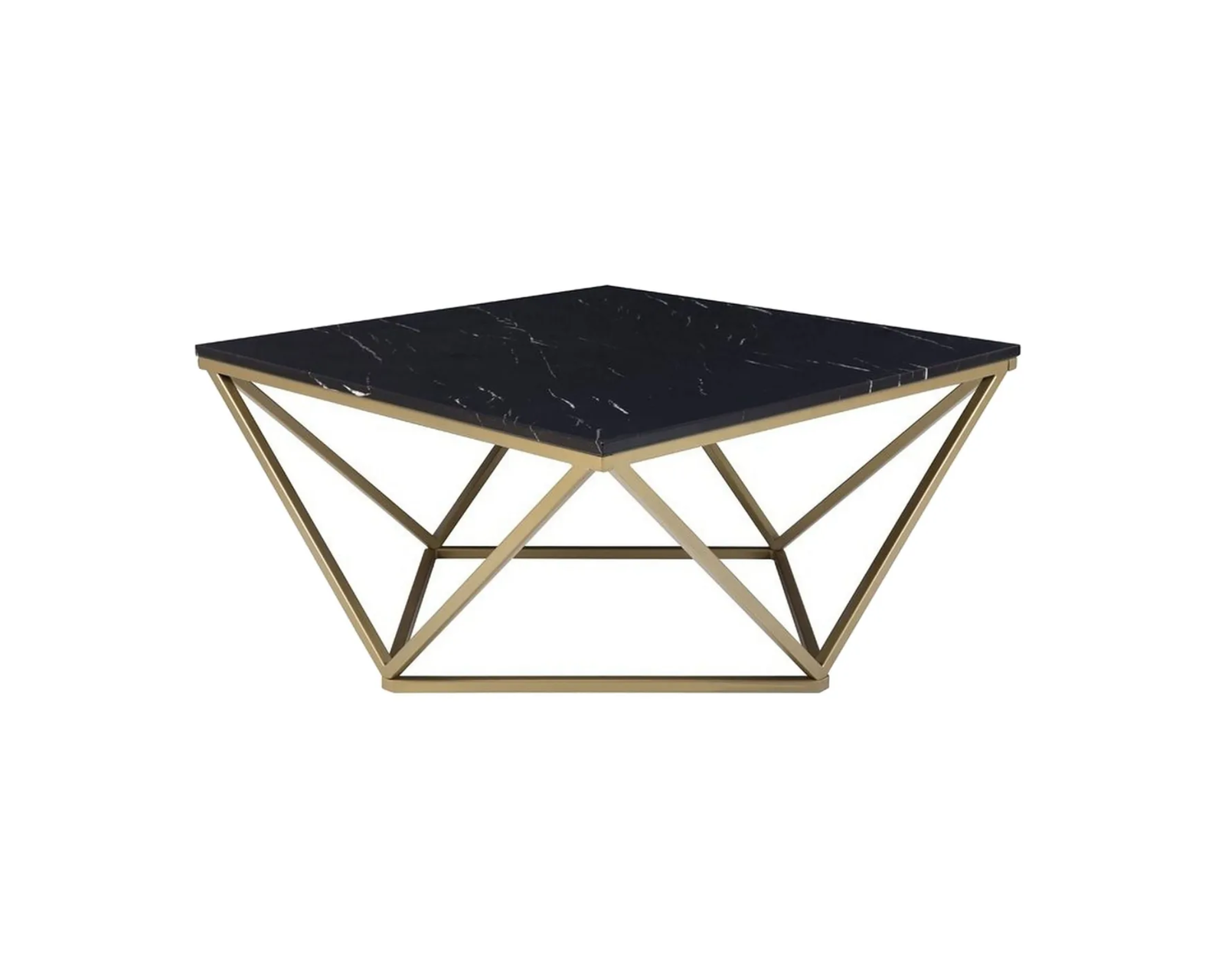 Det eleganta och geometriska Kubsch-soffbordet skapar en modern look i din inredning. Den marmormönstrade bordsskivan och det mässingsfärgade underredet fulländar soffbordets eleganta utseende. Tillverkat av MDF och metall. Produkten är ny