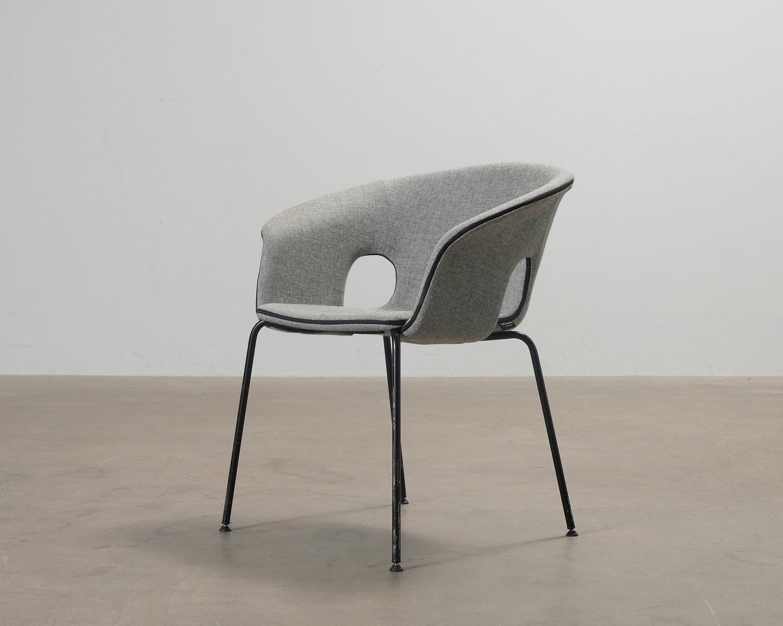 Stolen Bennett av det italienska märket La Cividina. Dragkedjan som löper längs sitsens kanter ger den enkla stolen en intressant finish. Formgiven av Luca Botto. Repor på benen och ett litet hål i klädseln på framsidan av sitsen. Helhetsintrycket är bra.