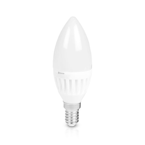 Elegant LED-kronljus med keramisk konstruktion och E14-sockel, utrustad med ett högt färgåtergivningsindex och en lång livslängd på 25.000 h. Lämplig för öppna armaturer. Finns i varm 3000K eller neutral 4000K färgtemperatur. Deklarerat ljusflöde 810 lm, vilket motsvarar en 65+W glödlampa. Dimbar.