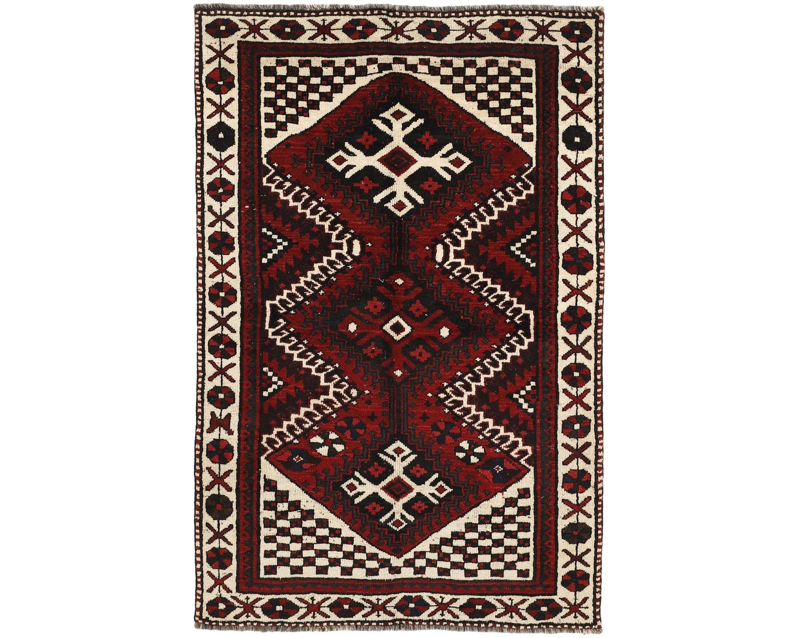 Lori-mattorna är handknutna ullmattor med tydlig tribal karaktär. Mattor från sydliga nomadstammar kännetecknas av starka kontraster, klara färger och kraftfulla motiv med framträdande röda toner. De som förknippas med Khorramabad-regionen har ofta mer geometriska mönster och en dämpad färgskala. Mattorna är tillverkade av ull, har dekorativa fransar och en knuttäthet på 50 000–150 000 knutar per kvadratmeter. Oanvänd.