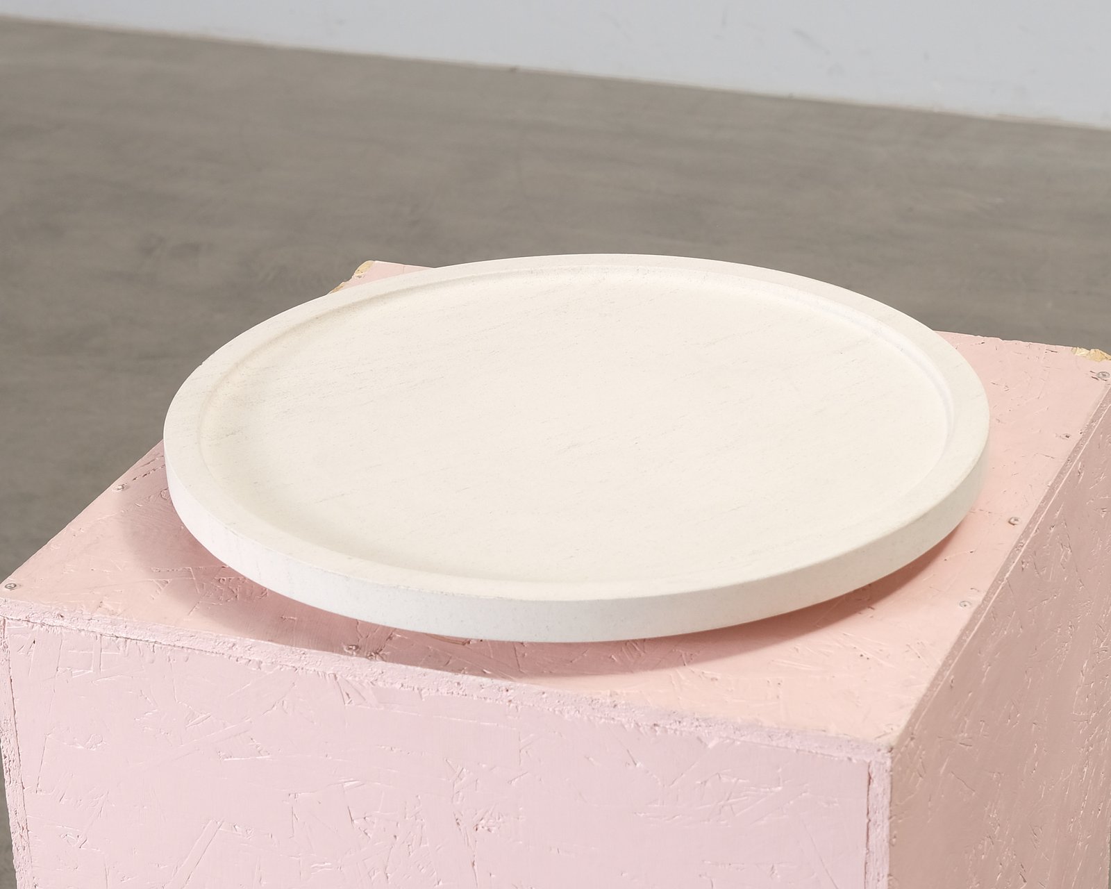 Louse Roen Gallery Object-samlingen innehåller serveringsfat, tallrikar och skålar i olika storlekar och former. Objekt 10 är en skulptural bricka gjord av kalksten, lämplig för servering av olika delikatesser eller för att visa upp föremål. Oanvänd