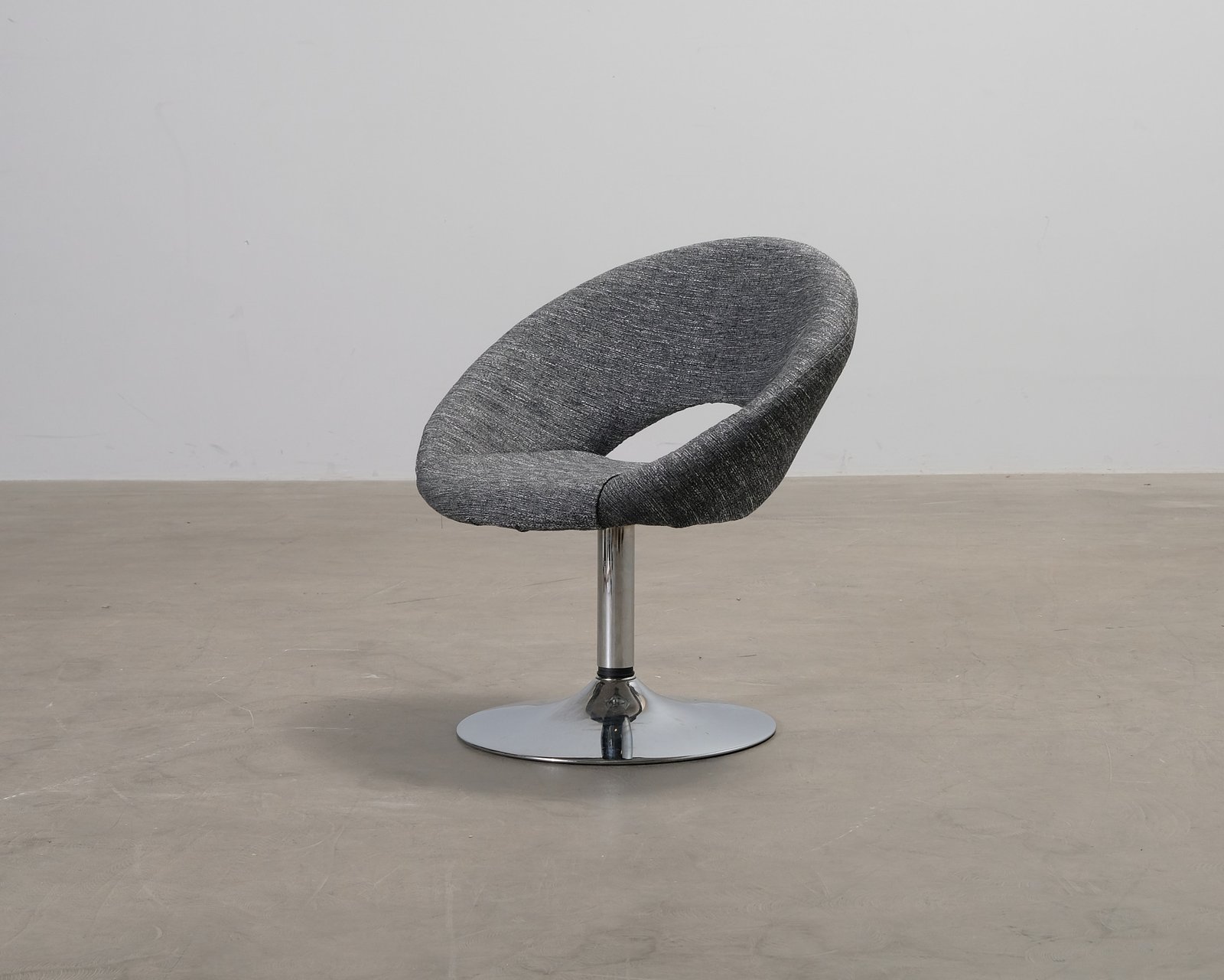 En elegant och tidlös loungestol som passar i både privata hem och offentliga miljöer. Stolen är klädd i Lauritzon grå Octavia-tyg. Ytliga repor på stolens metallben. Helhetsintrycket är bra.