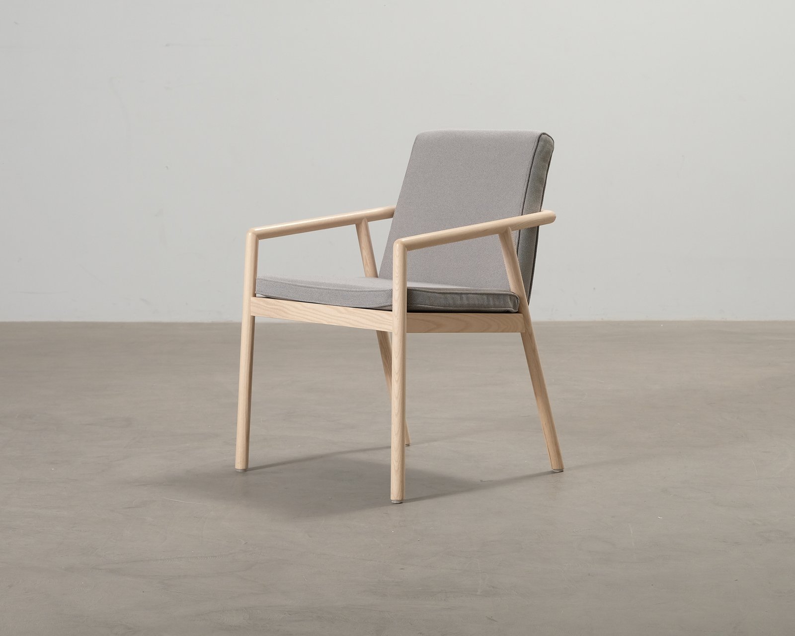 Leo-stolen från Lundbergs Möbler imponerar med sin eleganta design. De sneda armstöden smälter vackert in i träramen och den stoppade sitsen gör stolen till en bekväm plats att sitta på vid till exempel matbordet. Normalt bruksslitage. Helhetsintrycket är bra.