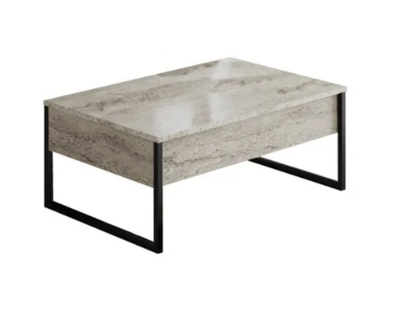 Ett stilrent och modernt soffbord med vacker stenliknande mönstring. Tillverkat av spånskiva och metall.
