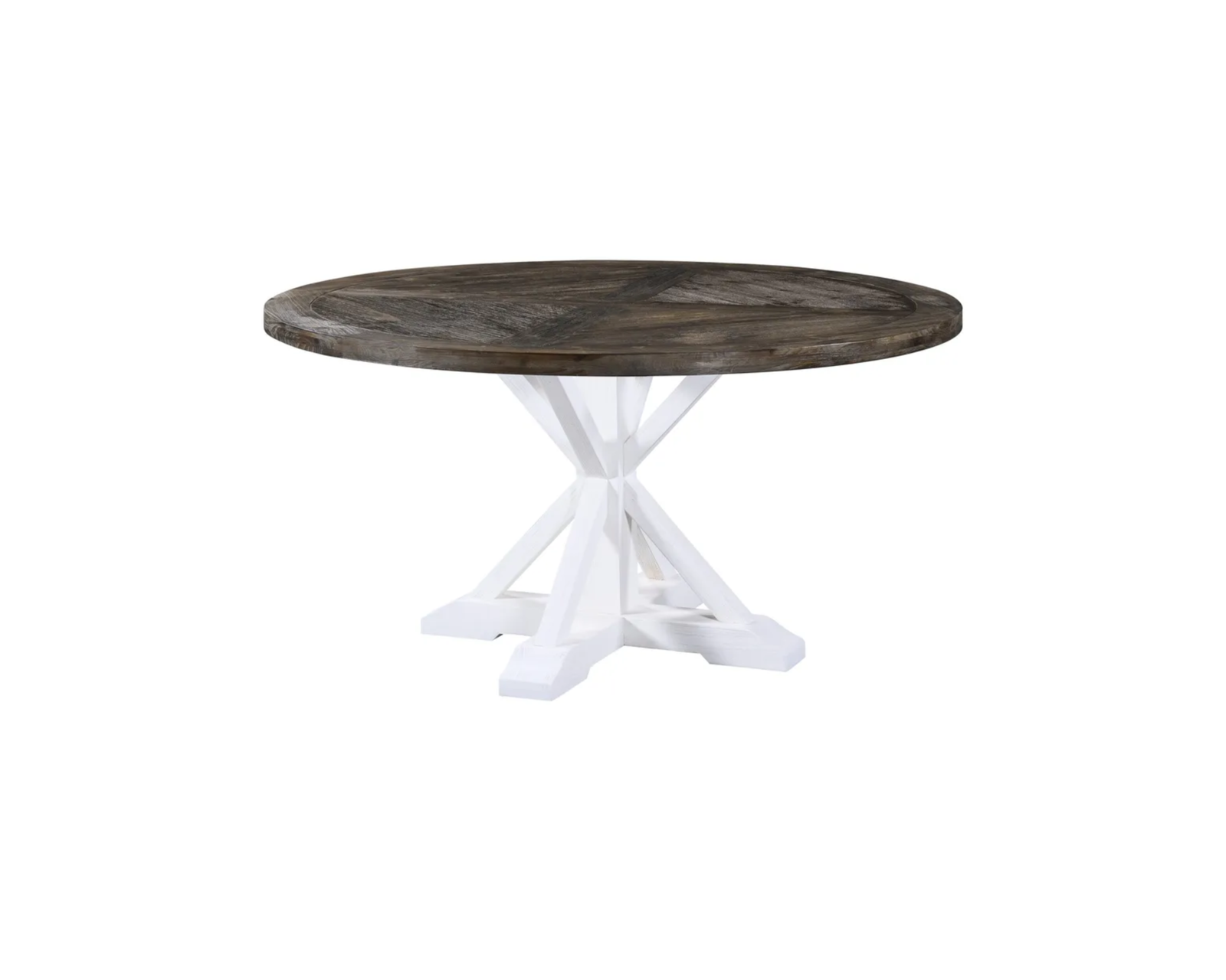 Lyon är ett rejält matbord med bordsskiva i vintage almträ och ett stabilt underrede i klassisk stil. Möbeln är handtillverkad av återvunnet trä. Luftfuktighet och temperaturändringar medför att träet drar ihop sig och expanderar. Små märken och skåror är en naturlig del av hantverket och möbelns design. Dessa kan öka eller minska beroende på väderförhållanden och klimatet inomhus och skapar patina som gör att inget bord liknar det andra. Flera djupa repor på bordets undersida och ett mindre märke på ett av benen, men helhetsintrycket är fint.