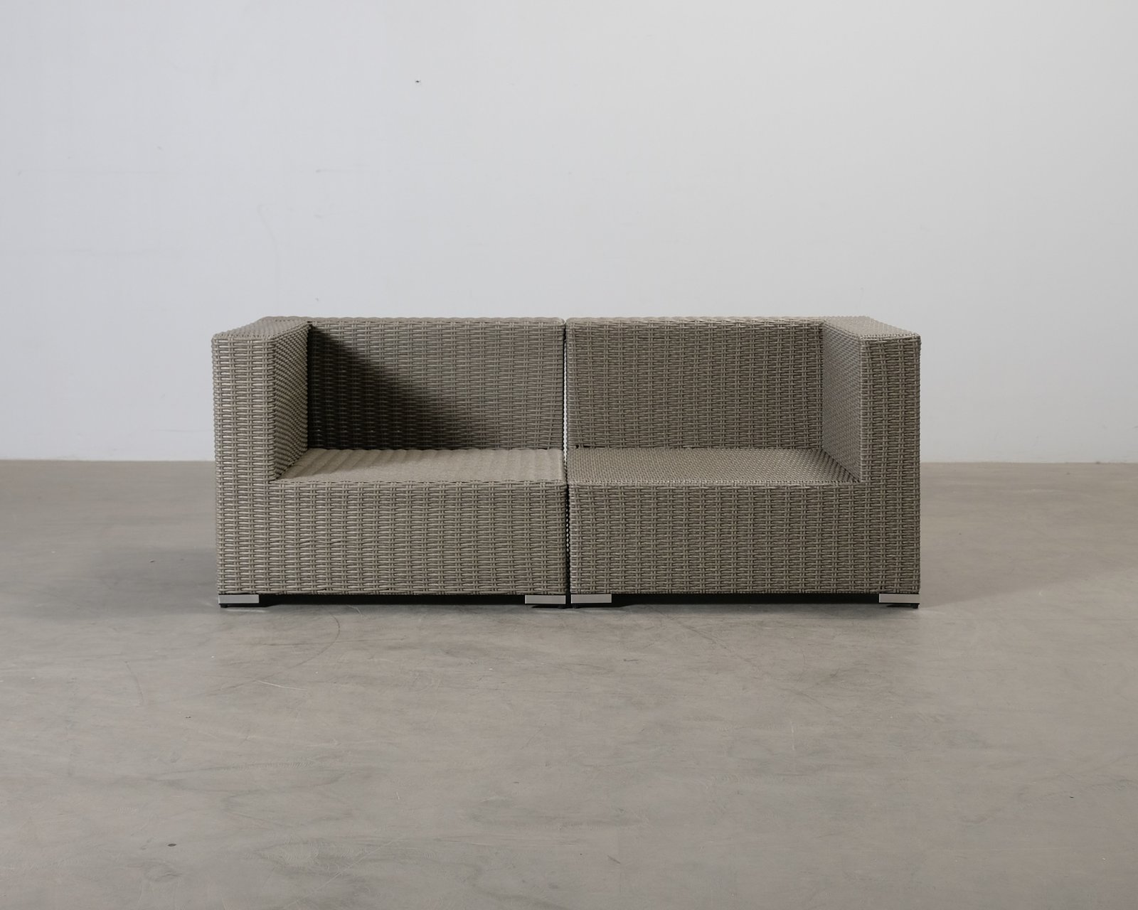 Praktisk och väderbeständig 2-sits soffa för terrassen, balkongen eller trädgården. Tillverkad av polyrotting. Produkten är oanvänd, men sittdynorna saknas.