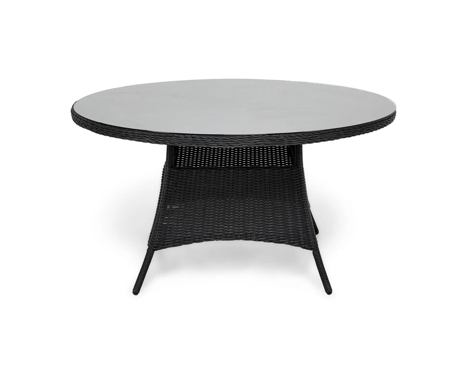 Snyggt och praktiskt trädgårdsbord med en diameter på 140 cm. Stomme i polyrotting och bordsskiva i glas. Marcus-bordet är tillverkat av väderbeständiga material som kräver mycket lite underhåll.