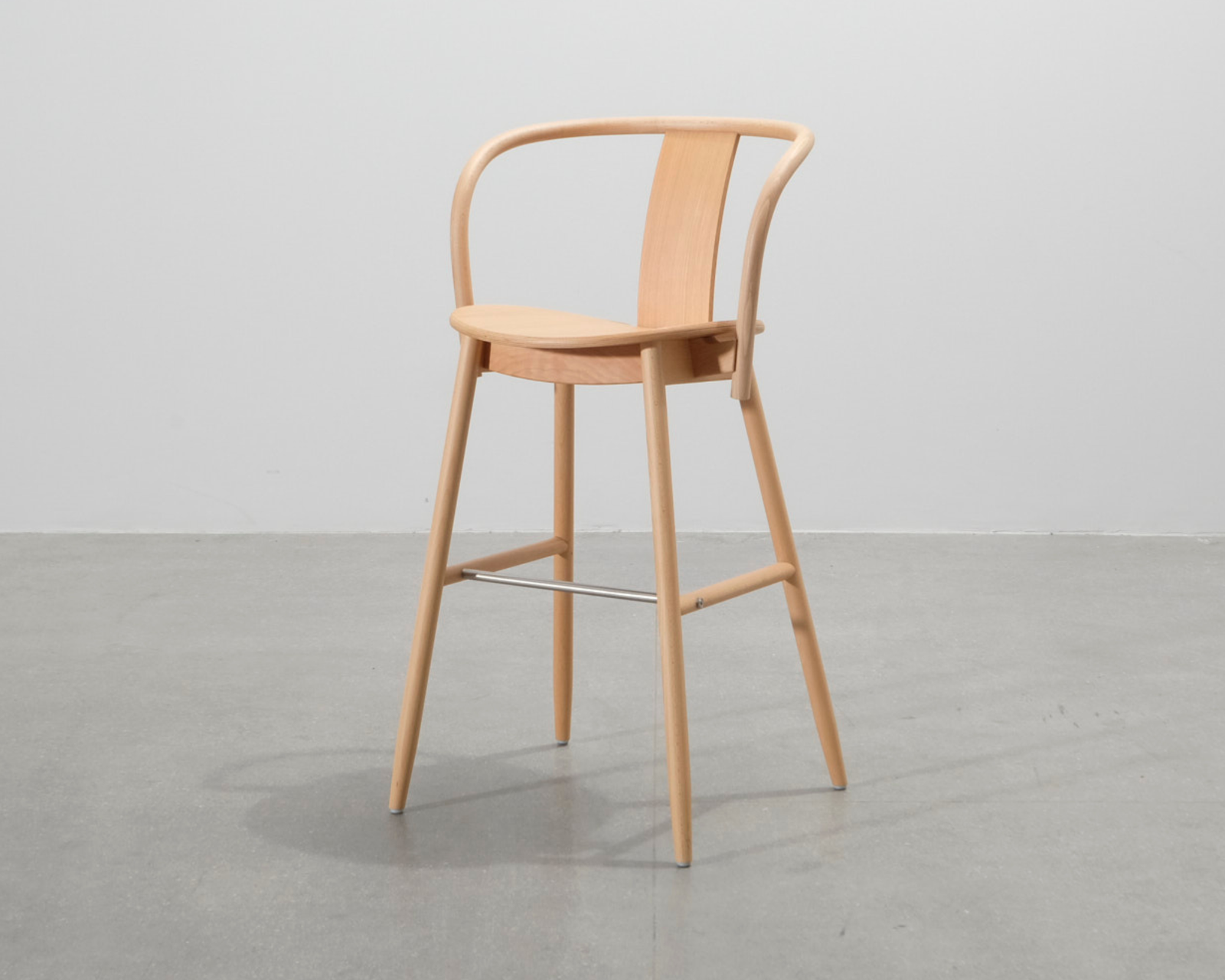 Icha barstol från Massproductions får sitt utseende från en robust träram, ett fotstöd i metall och en elegant böjd sits som också ger utmärkt sittkomfort. Icha är ett tidlöst och hållbart val för en köksö i hemmet, men det är också perfekt för offentliga utrymmen som barer och kaféer. Barstolen är designad av Chris Elebäck. Oanvänd.