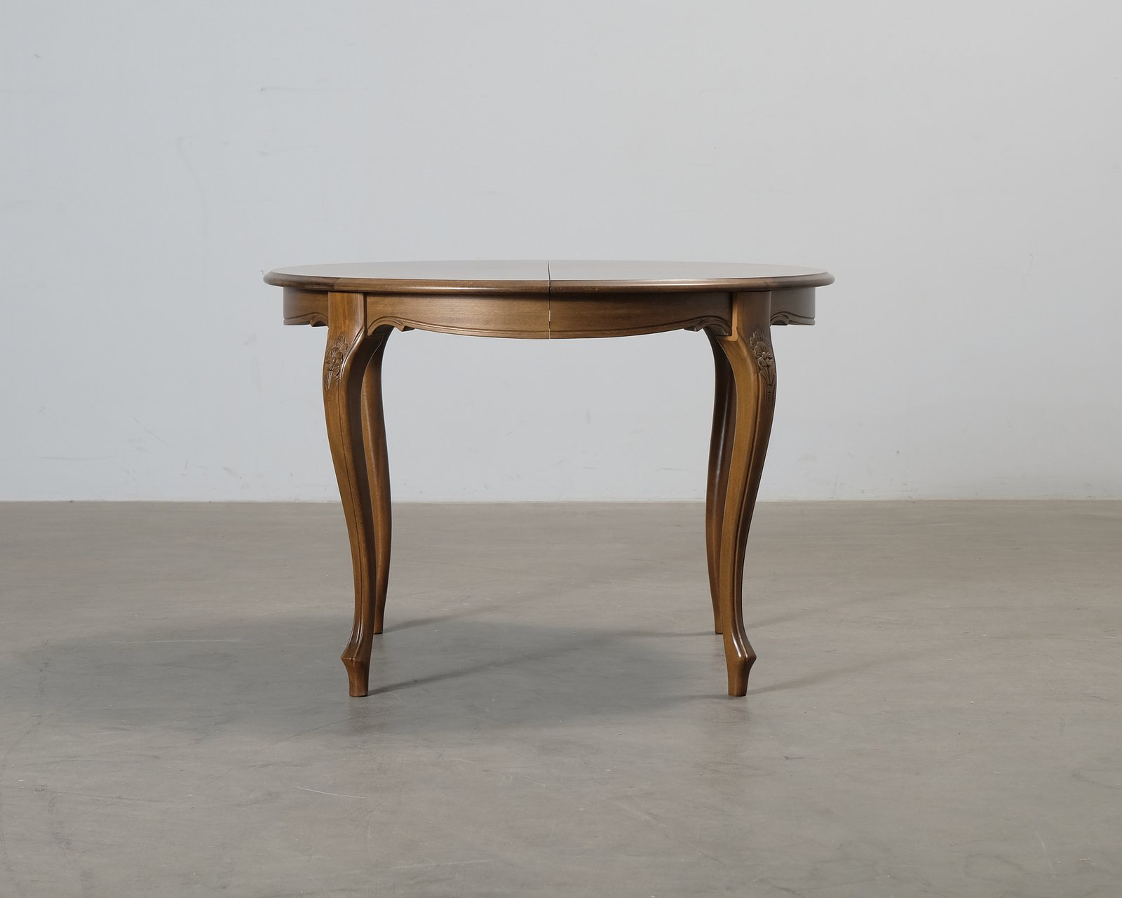 Ett magnifikt matbord i rokokostil som kompletterar den klassiska stilen i din inredning. Vackra detaljer och böjda ben ger bordet en elegant finish. Små spår av användning, repor och bucklor. Helhetsintrycket är bra. Iläggsskivorna saknas