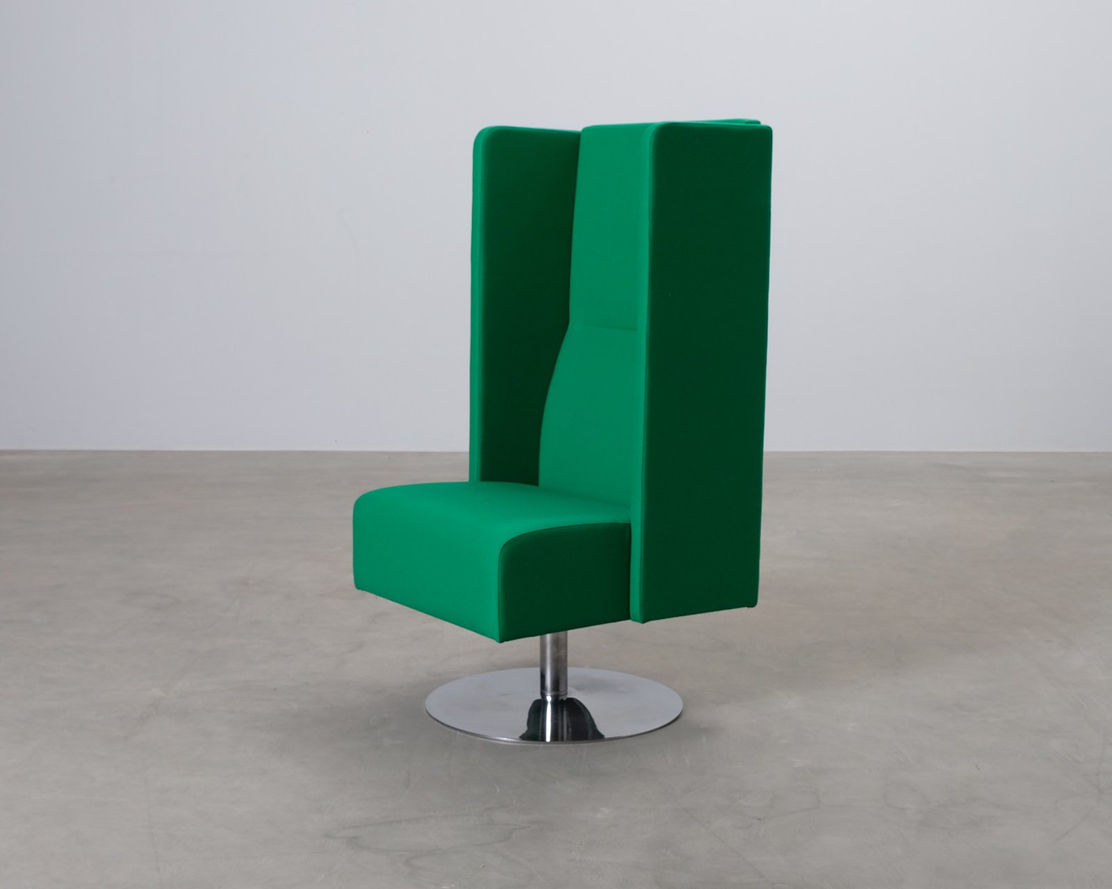 Monolite fåtölj med hög rygg och höga sidor. Fåtöljen dämpar ljud och skapar en avskärmad plats för en personer i olika typer av kontorsutrymmen. Tillverkad av Materia. Smärre bruksslitage, helhetsintrycket är gott.