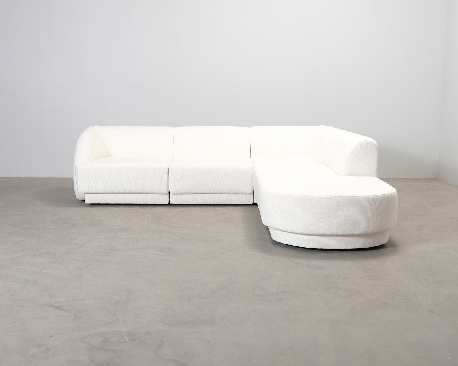 Den stiliga Miley hörnsoffan kombinerar modern design med enastående komfort. Den låga och släta ryggstödet smälter mjukt ihop med de lätt böjda armstöden och skapar ett balanserat och naturligt uttryck. Tjocka och elastiska sittdynor ger en förstklassig sittkomfort. Den naturvita chenilleklädseln framhäver soffans mjuka linjer och tillför rummet både fräschhet och harmoni. Miley är det perfekta valet för dig som vill ha både stil och komfort i ett.