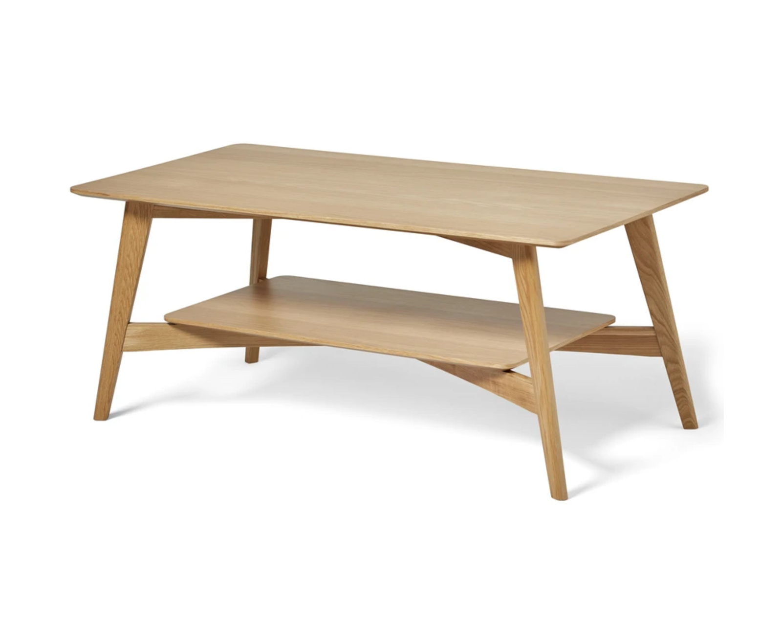 Ester erbjuder klassisk design och praktisk hyllplats för förvaring. Soffbordet är ytbehandlat med FSC-certifierad ekfanér. Det finns ett märke i hörnet på soffbordet från transporten. Helhetsintrycket är fint.