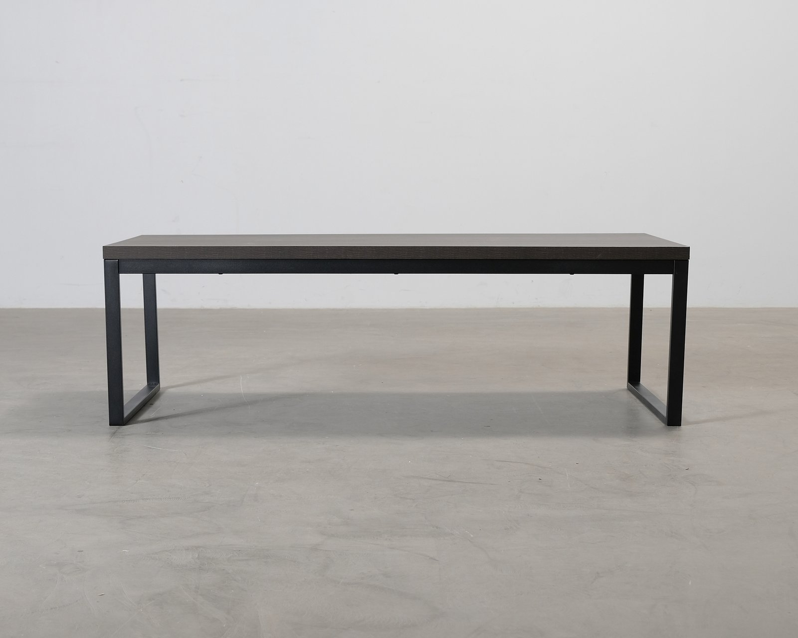 Stilrent och minimalistiskt 160 cm soffbord med melaminskiva och metallstomme.