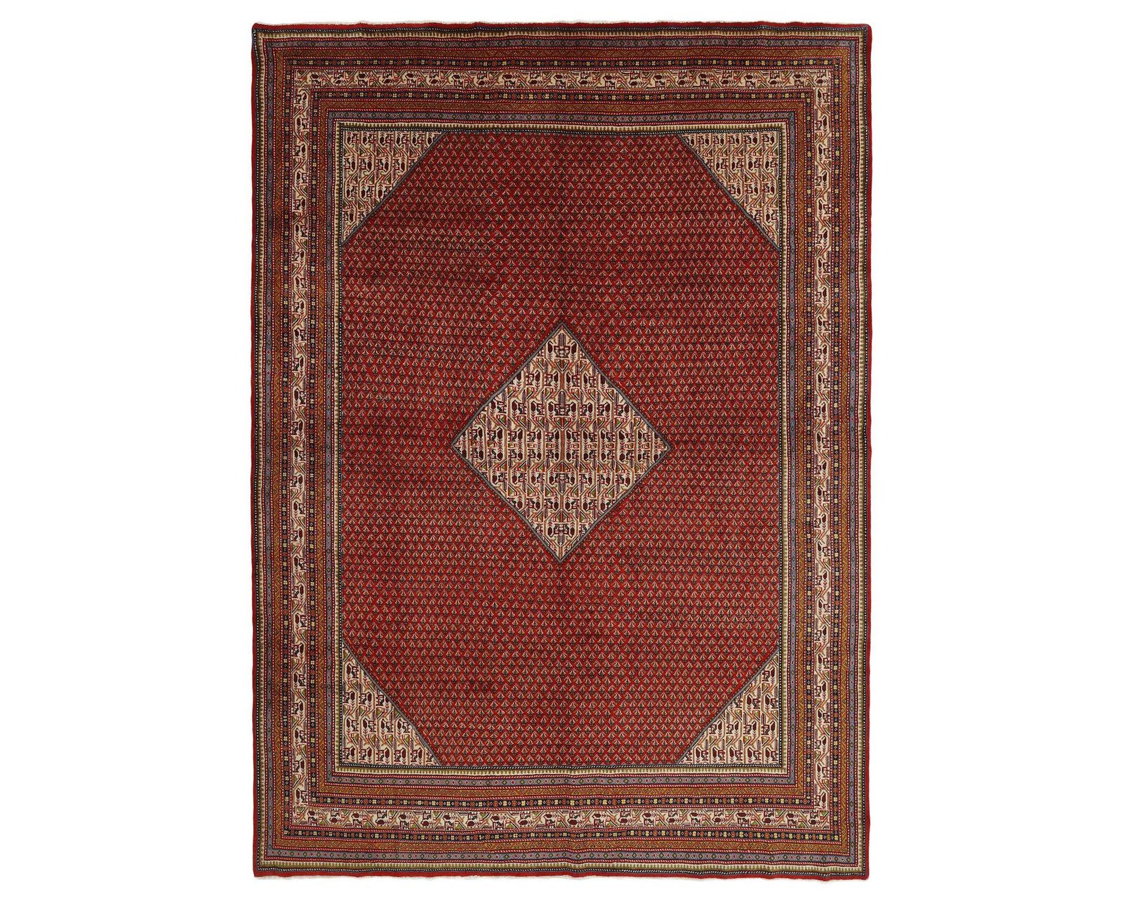 Persian Mir Boteh är handknutna mattor som huvudsakligen tillverkas i Sarough-området. De känns lätt igen på sitt speciella mönster, som består av mindre mir-e Butha. Mönstret har en karakteristisk päronliknande form och anses av många symbolisera en flamma som står för värme och liv. Flammotivet förekommer ofta i bakgrundsmönstret på persiska mattor. Oanvänd.