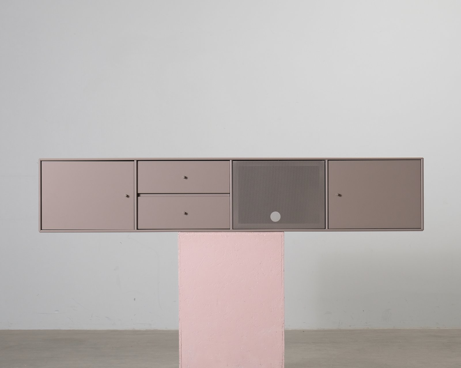Selection Octave, tillverkad av Montana, är ett minimalistiskt väggmonterat TV-bord designat av Peter J. Lassen. Den tidlösa designen gör det enkelt att kombinera bordet med olika inredningsstilar och erbjuder gott om förvaringsutrymme för mediautrustning och andra småsaker. Det finns en liten spricka på baksidan. Helhetsintrycket är bra.