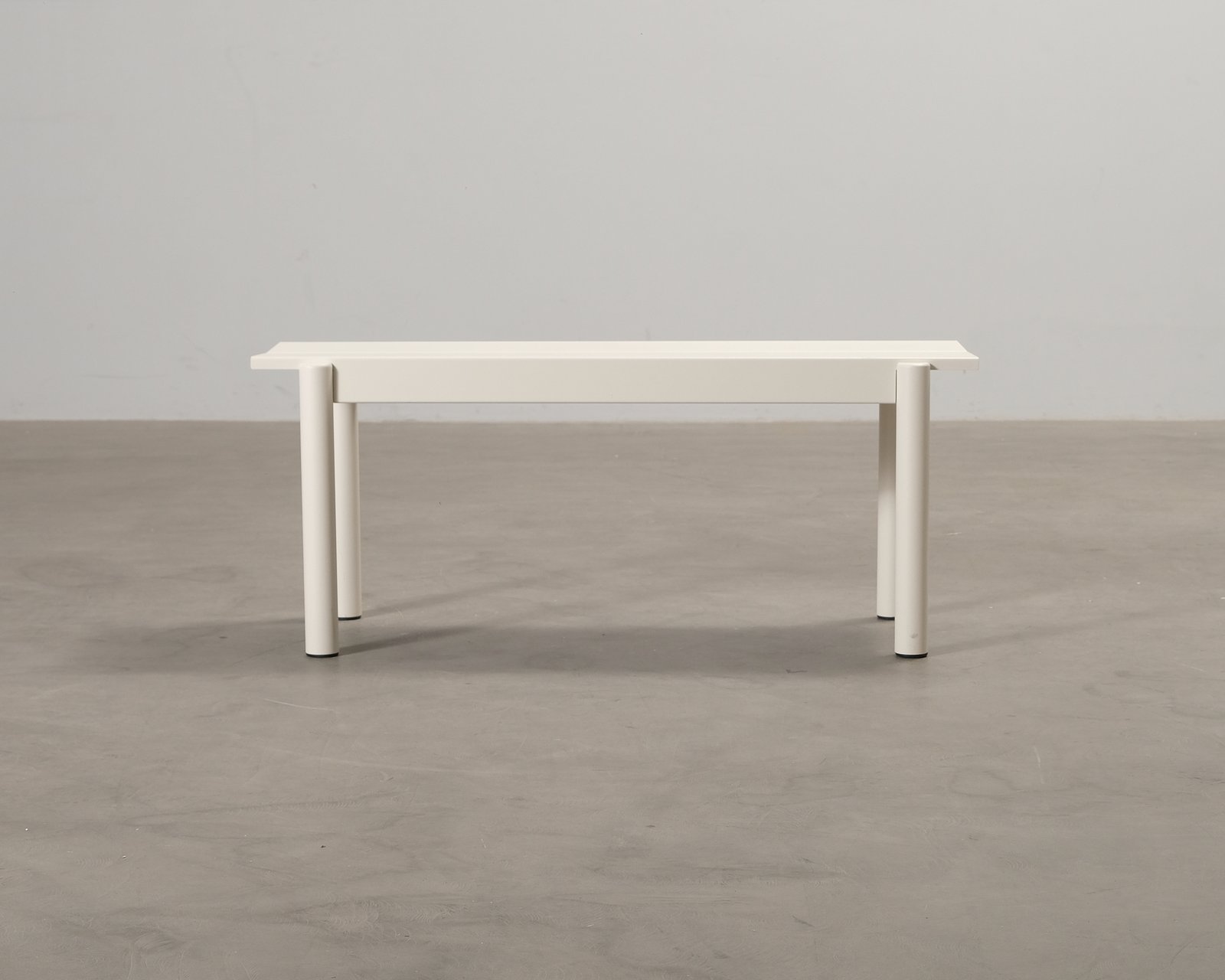 Linear Steel är en bänk från Muuto formgiven av Thomas Bentzen. Bänkens sits har en lätt lutning ner mot skåran för att undvika smutsansamlingar från regnvatten. Detta ger också bänken en bättre sittkomfort. Tillverkad i pulverlackerat stål. Små repor på sitsen. Helhetsintrycket är fint.