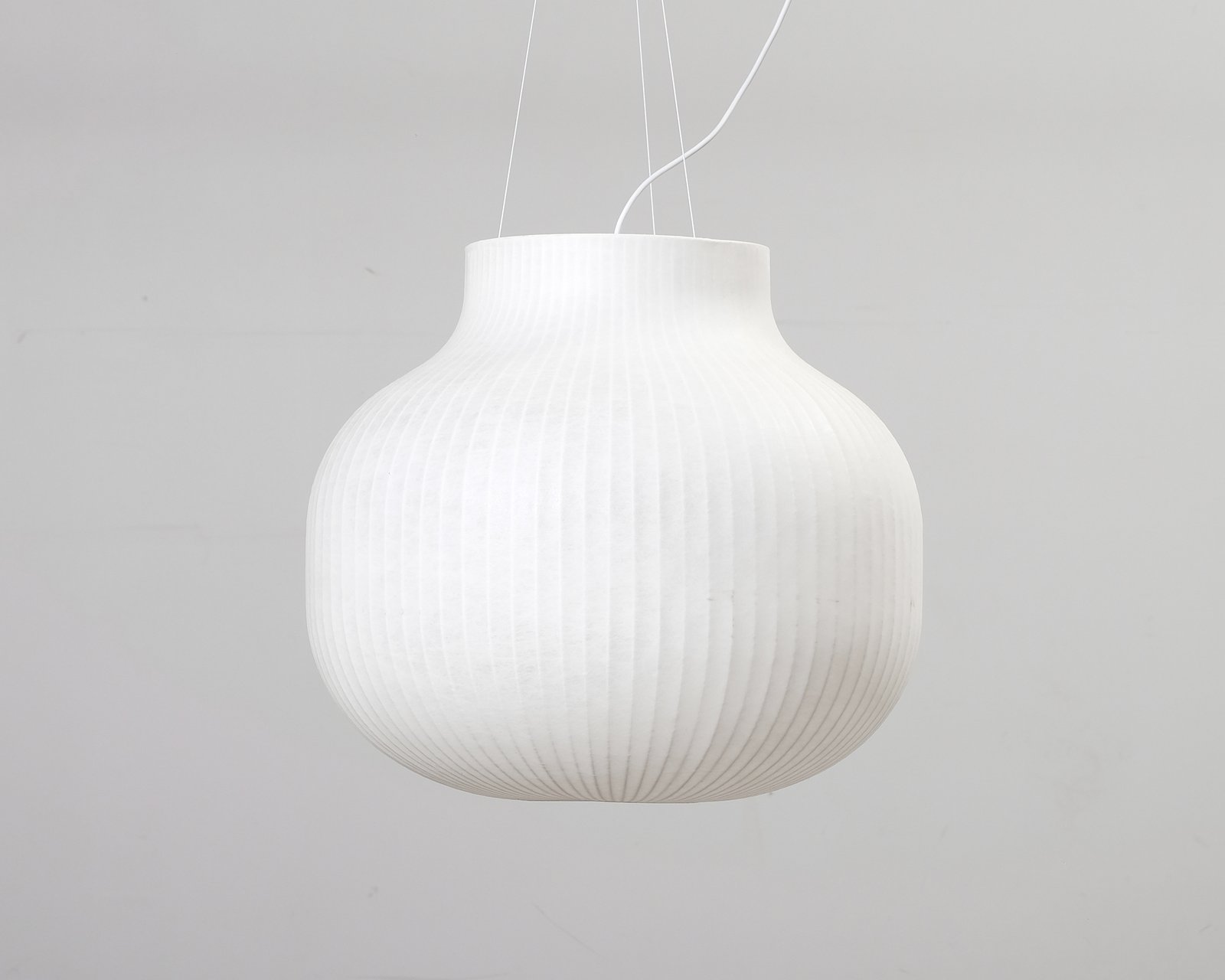 Muutos Strand Closed pendellampa har en modern design med mjuka och lekfulla former. Den är tillverkad av sprayad harts som med sina små trådar skapar en intressant struktur och ett molnliknande utseende på lampans metalram. Lampan ger både en mjuk spridd belysning och direkt ljus genom sina öppningar upptill och nedtill. Formgiven av Benjamin Hubert. Kablens längd är endast cirka 40 cm. Några bucklor/hål på basen. Helhetsintrycket är bra.