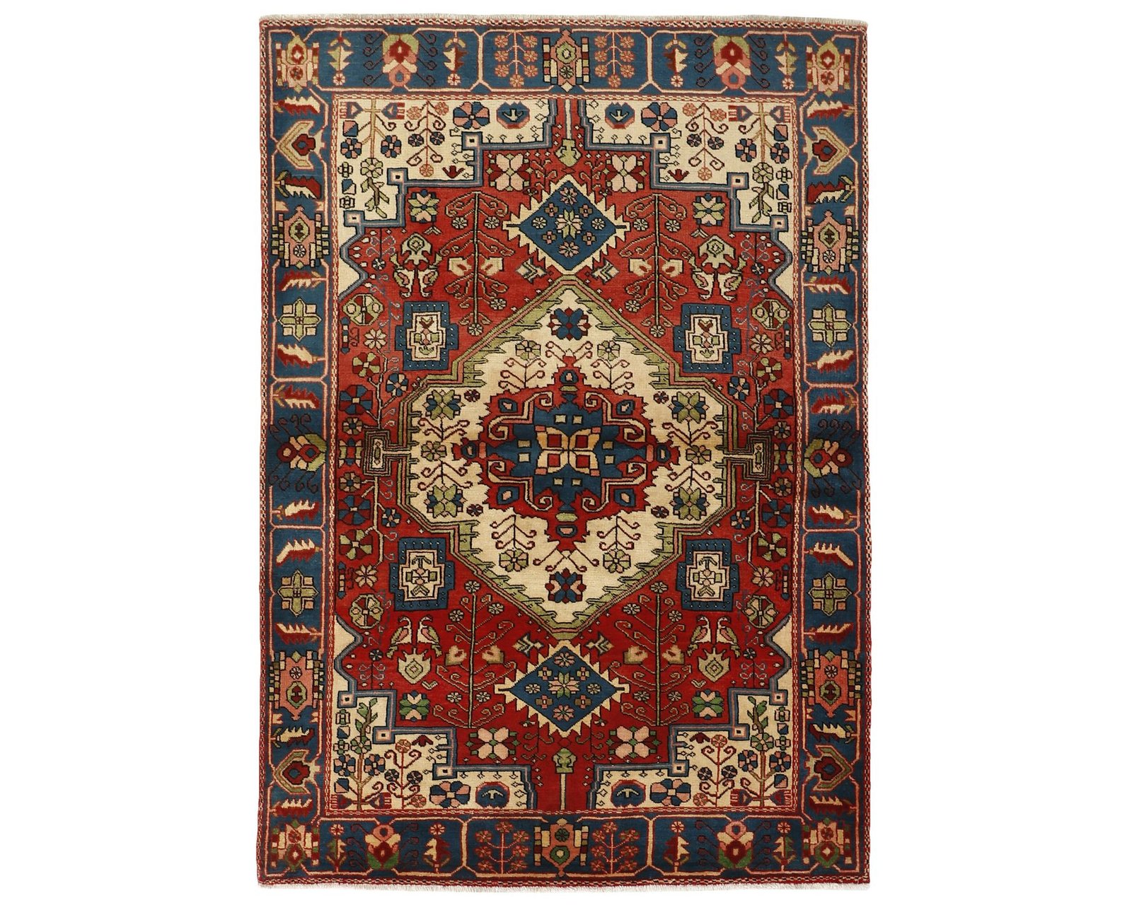 Nahavand-mattorna är handknutna ullmattor med varp i bomull. Deras mönster är rurala tolkningar av klassiska motiv och har vanligtvis en central medaljong med dekorativa hörnelement. Färgskalan är varm och jordnära, med inslag av rött, brunt, blått och grönt som ger ett harmoniskt uttryck. Knuttätheten varierar mellan 150 000 och 250 000 knutar per kvadratmeter. Oanvänd.