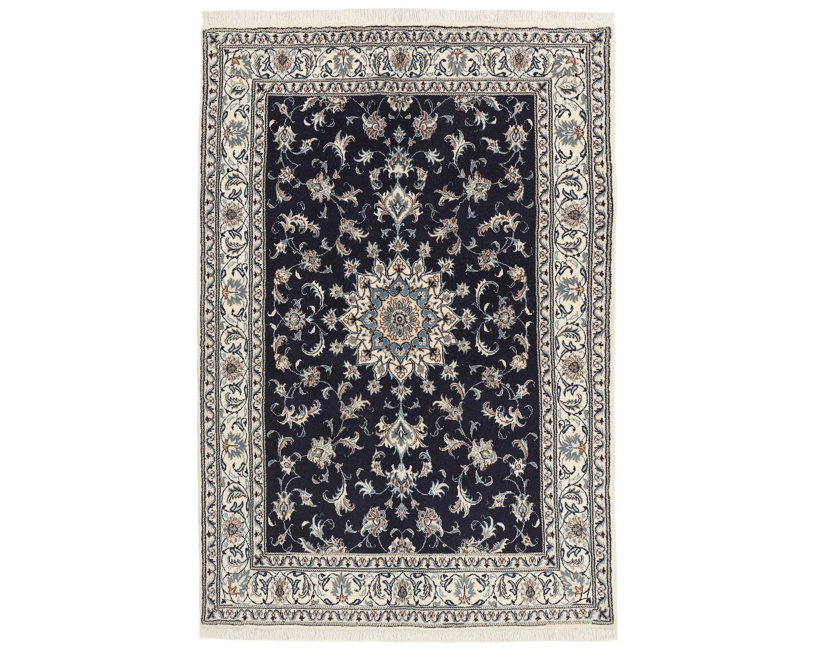 Nain Kashmar-mattorna kännetecknas, liksom andra Nain-mattor, av ett klassiskt uttryck och en elegant färgskala i toner av vitt och beige med subtila inslag av rött, grönt och blått. De är handknutna med varp i bomull och lugg i ull, vilket ger ett balanserat helhetsintryck med tydlig mönsterdefinition. Konstruktionen är något grövre, med en knuttäthet på 150 000–250 000 knutar per kvadratmeter, vilket resulterar i en yta som är både tålig och detaljrik. Oanvänd.