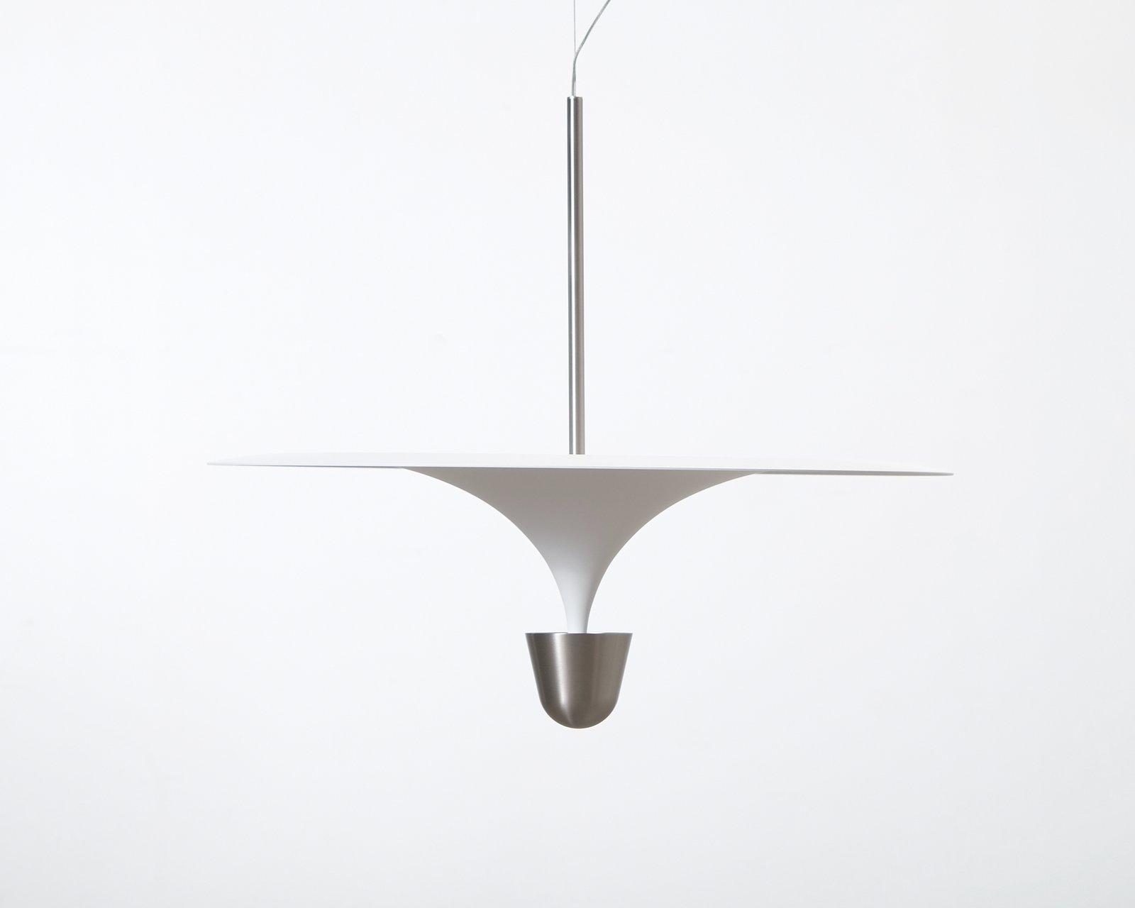 Kantarell är en skulptural taklampa från New Works med en organisk form inspirerad av naturens mjuka linjer. Den vita skärmen filtrerar ljuset behagligt och skapar en lugn och stämningsfull belysning. Lampan fungerar som ett effektfullt blickfång både i vardagsrummet och ovanför matbordet. Lampan är designad av Falke Svatun. Lampan hänger något snett när den är upphängd. Helhetsintrycket är fint.