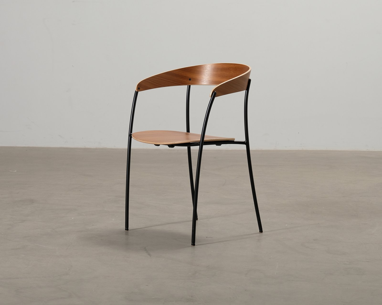 Missing Chair är en enkel och elegant stol från New Works, designad av den kroatiska designstudion Regular Company. Tillsammans gör de sin egna tolkning av den klassiska caféstolen där de ville uppnå en lätt, stapelbar och hållbar stol – med en modern silhuett. Några små repor. Helhetsintrycket är fint.