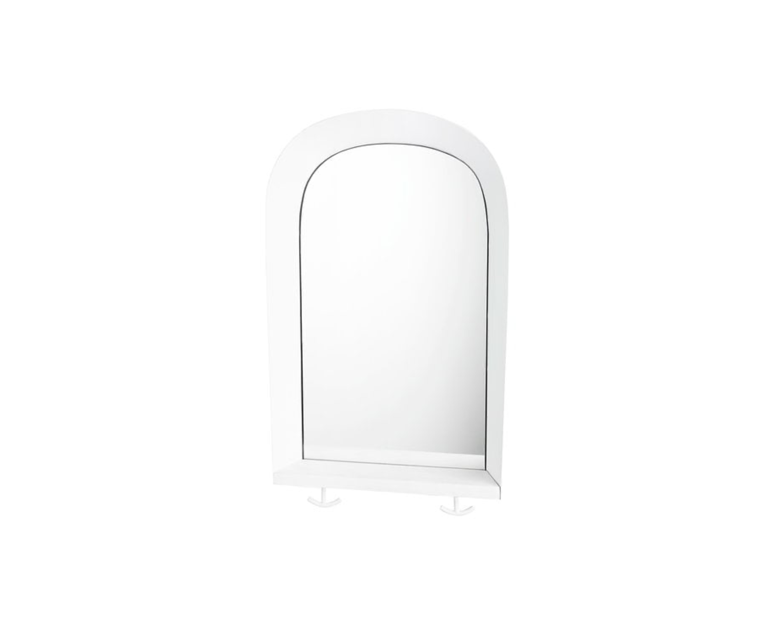 Portal-spegeln från Nofred är speciellt designad för barn. Denna minimalistiska spegel är designad av Anderssen & Voll och har en ram med upphängningskrokar och en avsats för förvaring av föremål. Spegelramen är tillverkad av stål och ask. Oanvänd