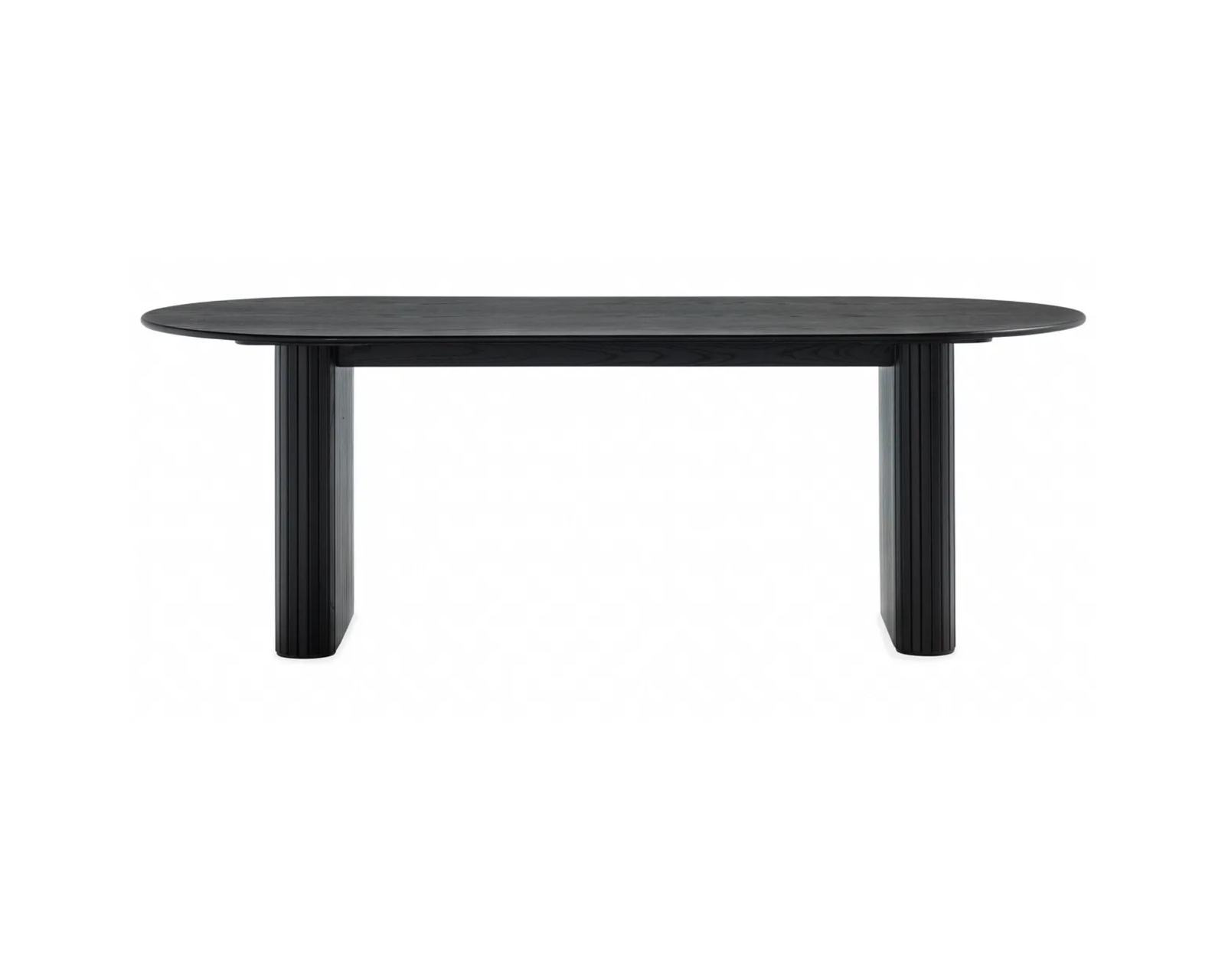 Matbord i ek med två ben med lamellpanel. Den enkla designen och bordets svarta färg gör att det passar i alla inredningar. Tillverkad av MDF och ekfanér. Repor och viss blekning på bordsskivan.
