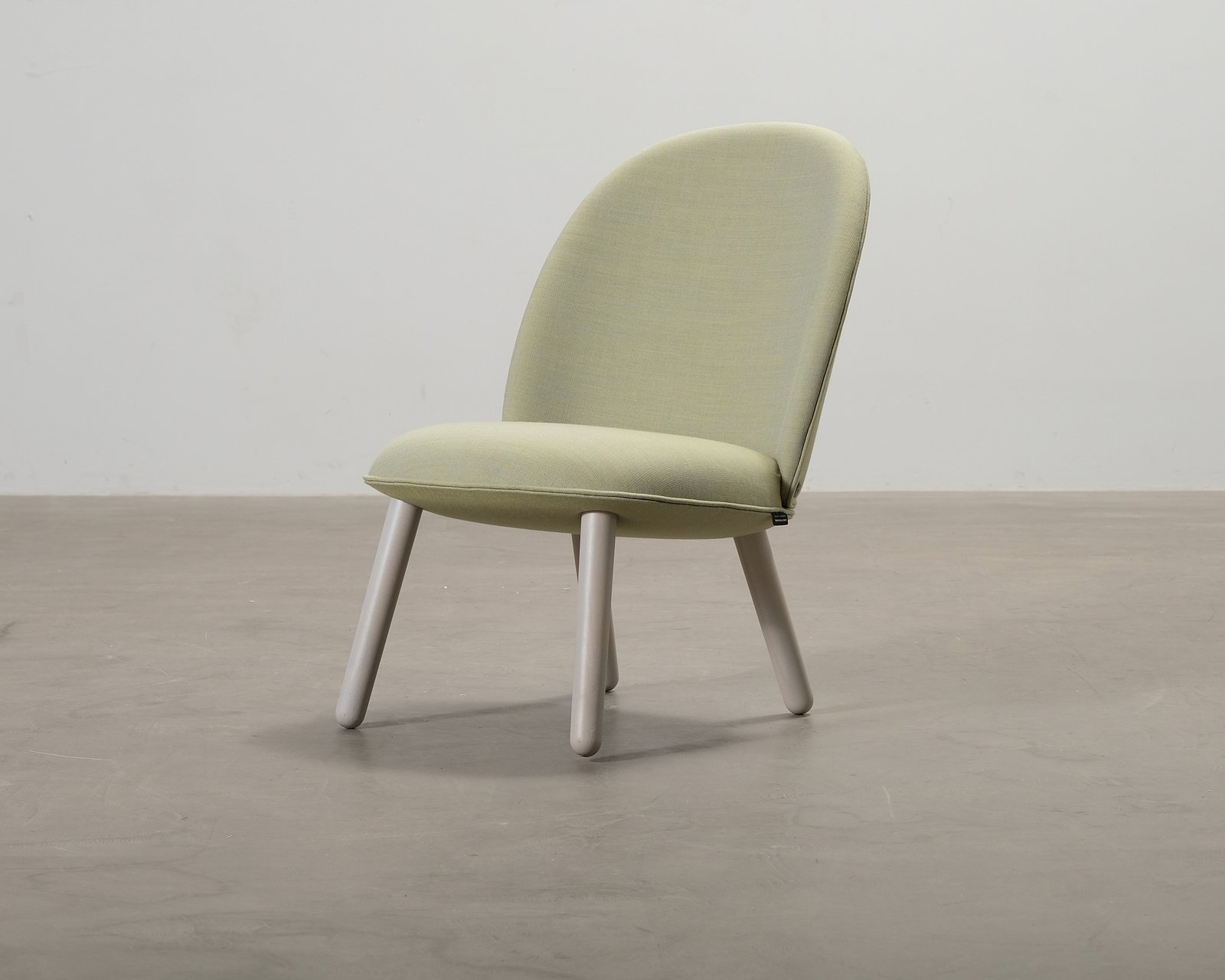 Ace är en kombination av flexibilitet, enkel elegans och högkvalitativa material. Grön tygklädsel och träben fulländar stolens eleganta utseende. Ace-fåtöljen är tillverkad av Normann Copenhagen. Normalt bruksslitage på ben och några små blekta fläckar på klädseln. Helhetsintrycket är bra.