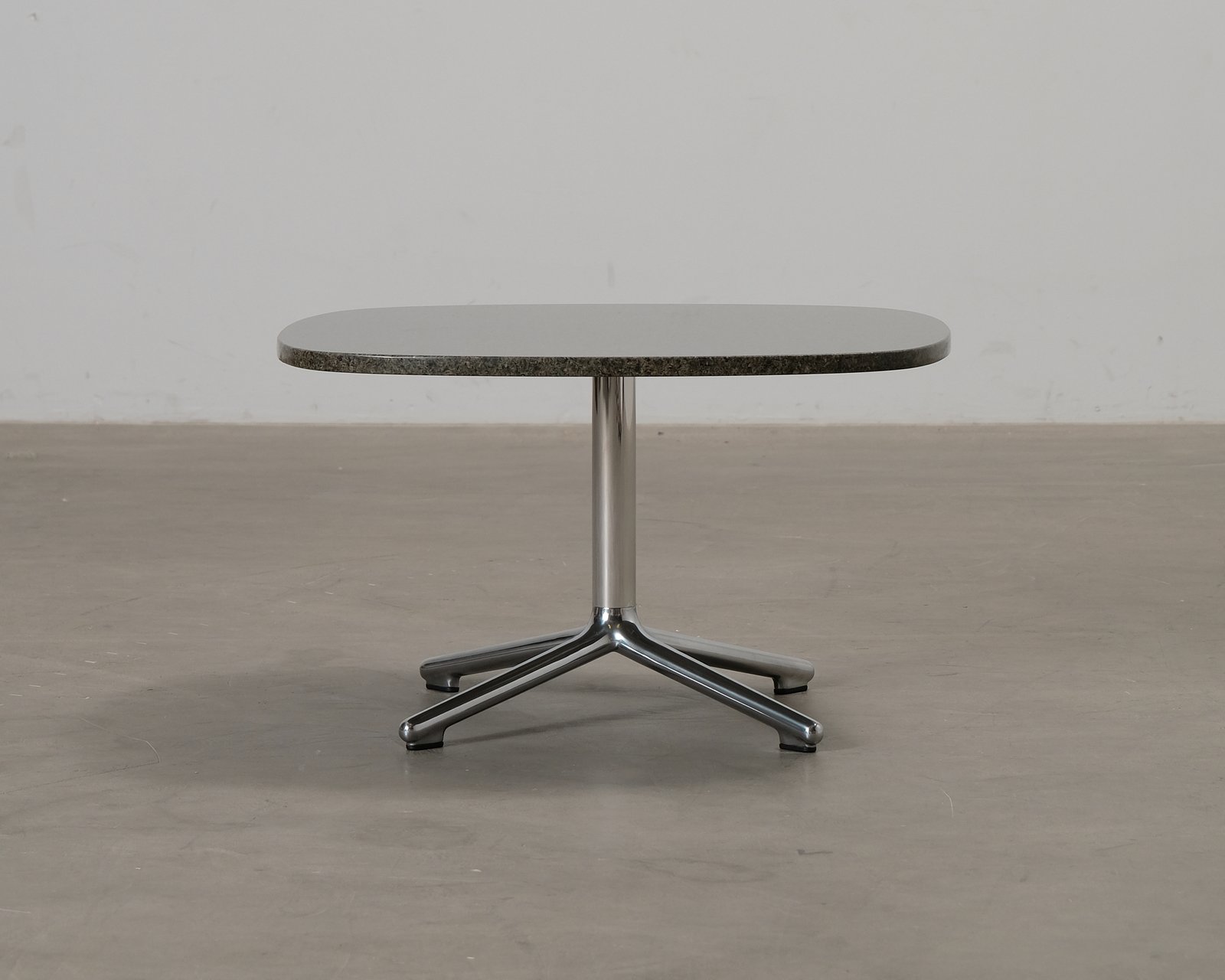 Era Table är ett stilrent och tidlöst sidobord som passar in i en mängd olika inredningsstilar. Den minimalistiska designen och de mjuka linjerna gör bordet till en perfekt följeslagare till en fåtölj, soffa eller som en elegant accent i rummet. Tack vare sina kompakta mått fungerar bordet lika bra i mindre utrymmen som i vardagsrummet, sovrummet eller hemmakontoret. Bordet har en pulverlackerad stålram som ger stabilitet, medan den rundade bordsskivan bidrar till ett harmoniskt uttryck. Färg: Aluminium / Black Granite. Oanvänd.