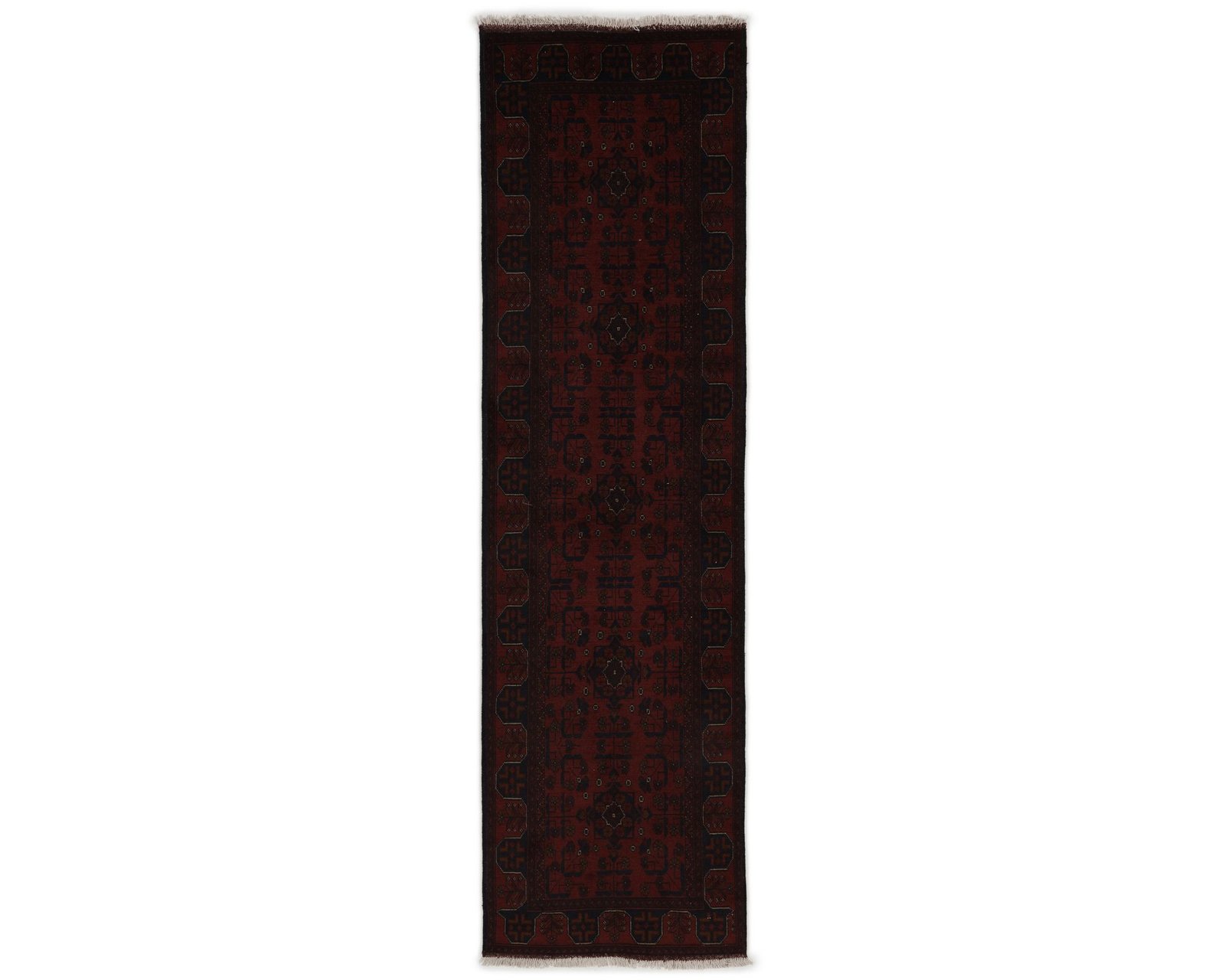 Old Afghan-mattorna är handknutna ullmattor som utmärks av en djup, varm röd bottenfärg kombinerad med mörkblå mönsterdetaljer samt inslag av ockra och beige. Den relativt höga, stadiga luggen innehåller ofta get- och hästhår, vilket ger mattorna en robust karaktär. Traditionella Gül-motiv och senehknutning skapar en rytmisk mönsterstruktur. Knuttätheten ligger mellan 150 000 och 250 000 knutar per kvadratmeter. Oanvänd.