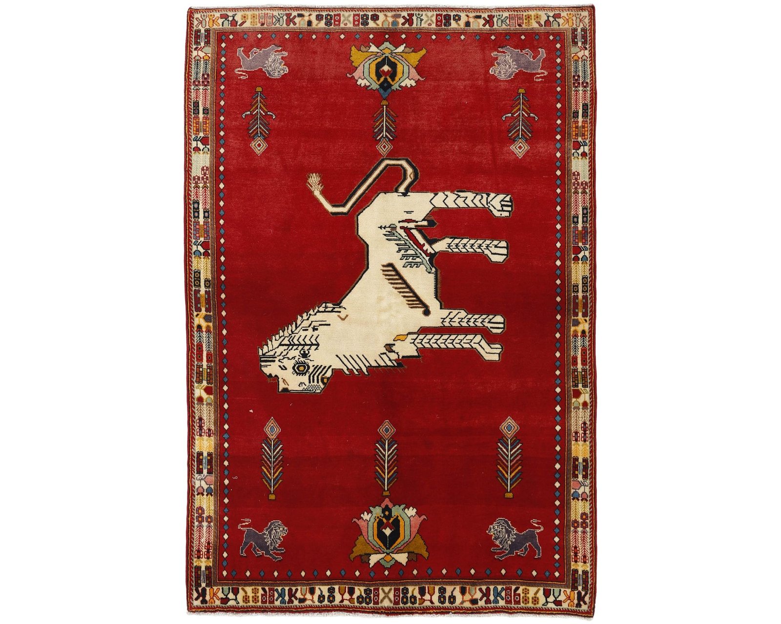 Old Figural Kashghai-mattorna har samma handknutna ullkonstruktion och kraftfulla färgskala som övriga Kashghai-mattor. De kännetecknas av geometriska kompositioner som även inkluderar figurer som djur och människor. Mattorna har en kompakt och robust struktur med fin knutning som ger ytan djup. Knuttätheten ligger mellan 150 000 och 250 000 knutar per kvadratmeter. Oanvänd.