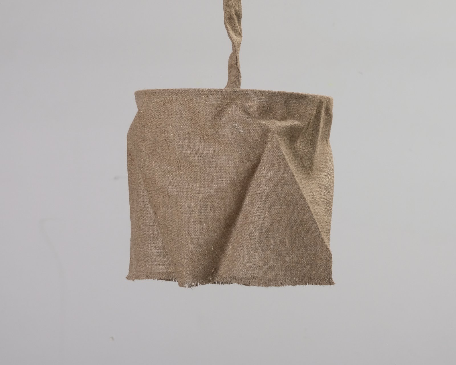 Originell pendellampa med skärm i brunt tyg. Lampans organiska design och känsla ger värme till inredningen och är perfekt för hemmet, men också för till exempel en stuga. Oanvänd