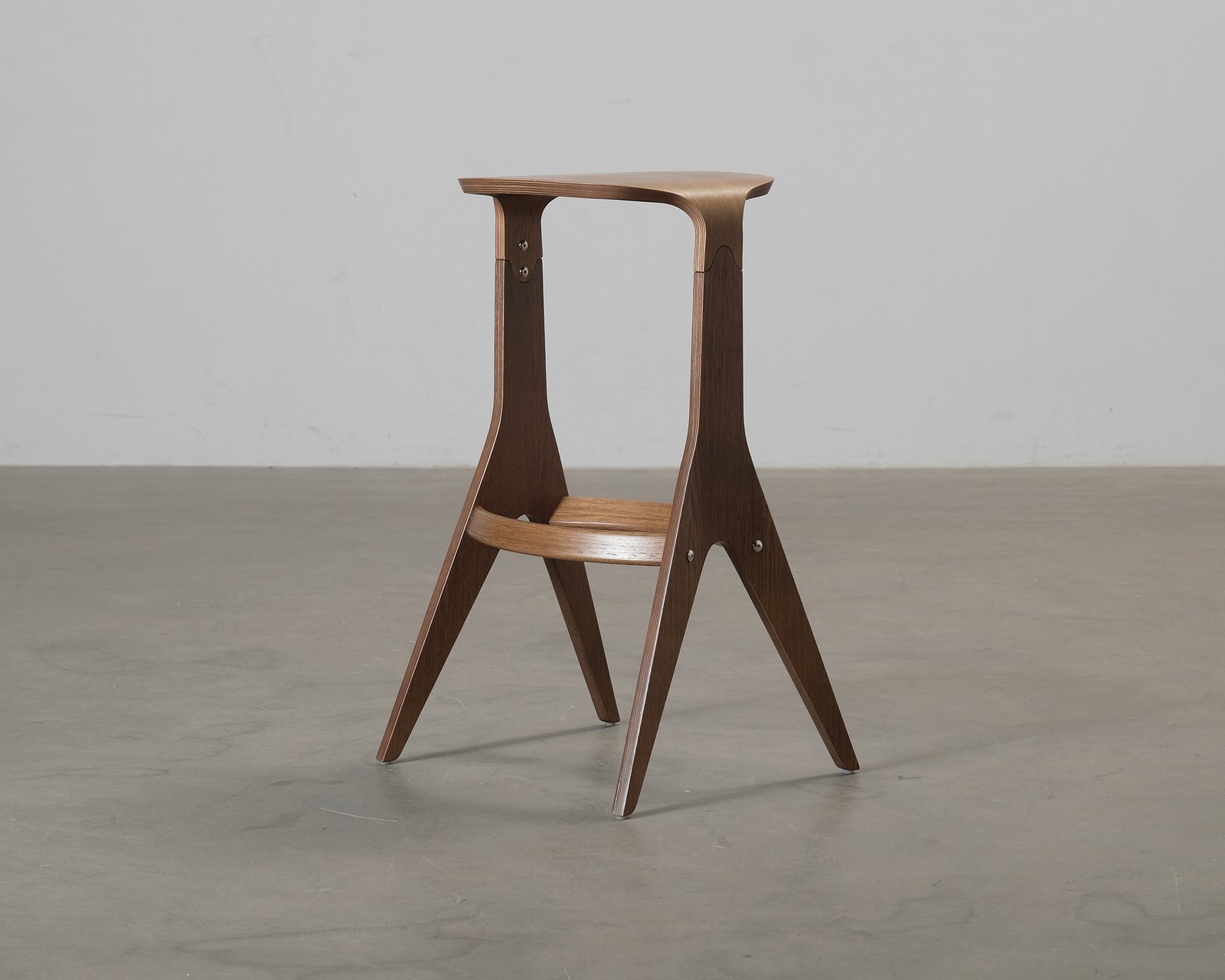 Lavitta barstol i färgen mörk ek. Stolen är formgiven av designstudion Poiat och den är konstruerad av två formpressade delar av fanerad plywood. Prisbelönta Lavitta serien kan beskrivas som en tolkning av traditionella finska utemöbler. Seriens vackert utformade stolar, pallar, bänkar och bord ger personlighet till hemmet och offentliga utrymmen. Oanvänd