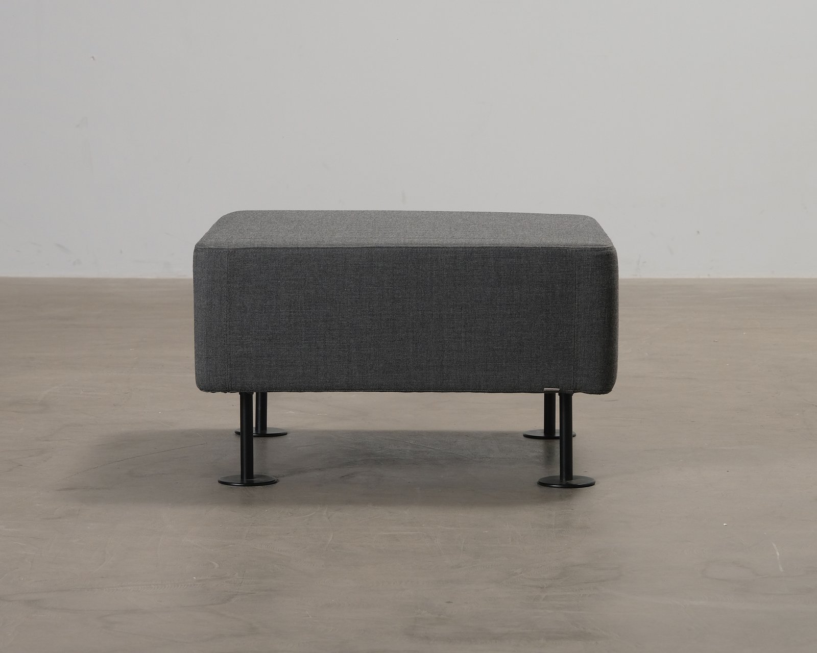 Profim WALL IN 20 är en minimalistisk och tidlös fotpall som passar för kontor och offentliga utrymmen, men också för privata hem. Den är klädd i grått tyg och har svarta metallben. Små spår av användning. Helhetsintrycket är fint.