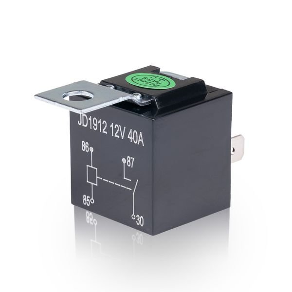 Universalrelä för 12 V spänning. Kan t.ex. användas för att installera extraljus. Strömstyrka 40A (480W).