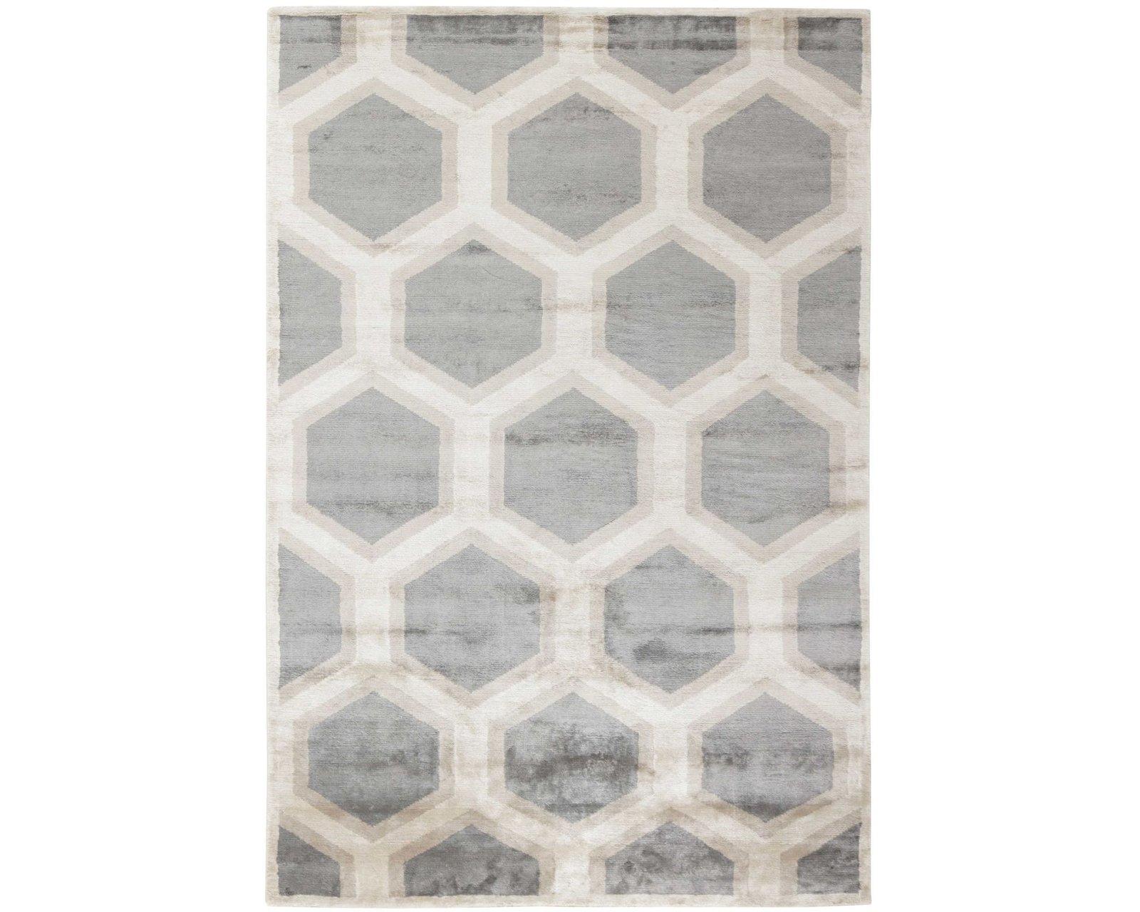 Cosmou-mattorna har ett modernt men tidlöst uttryck, framtaget för att komplettera enkla nordiska interiörer. De grafiska mönstren går i dämpade färgtoner. Varje matta är handknuten i Indien av viskos, vilket ger ytan en slät struktur och en subtil lyster. Kollektionen är framtagen i samarbete med DIS Inredning och knuttätheten varierar mellan 150 000 och 250 000 knutar per kvadratmeter. Oanvänd.