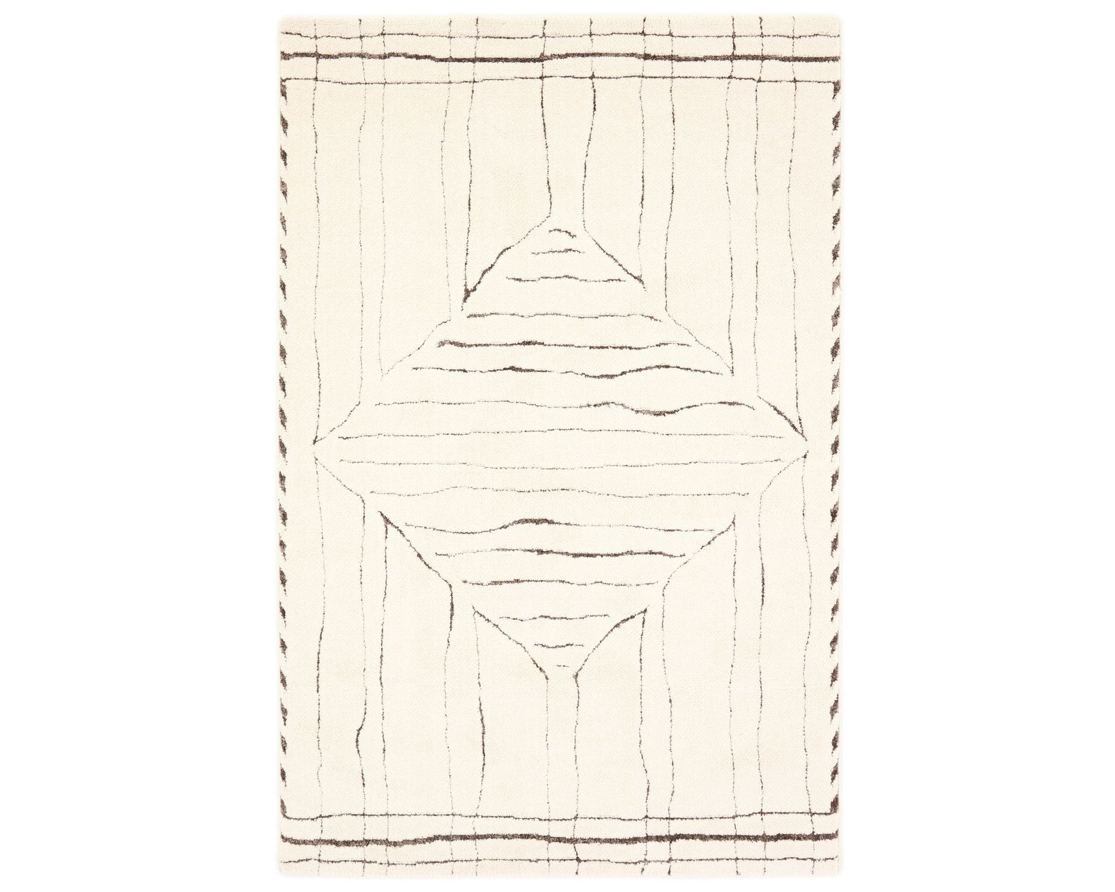 Everyday Savannah-mattorna är inspirerade av marockansk mattradition och överraskar med sina enkla, grafiska mönster på huvudsakligen ljusa bakgrunder. En högkvalitativ matta tillverkad i 100% polyester med en bas av bomull. Oanvänd.