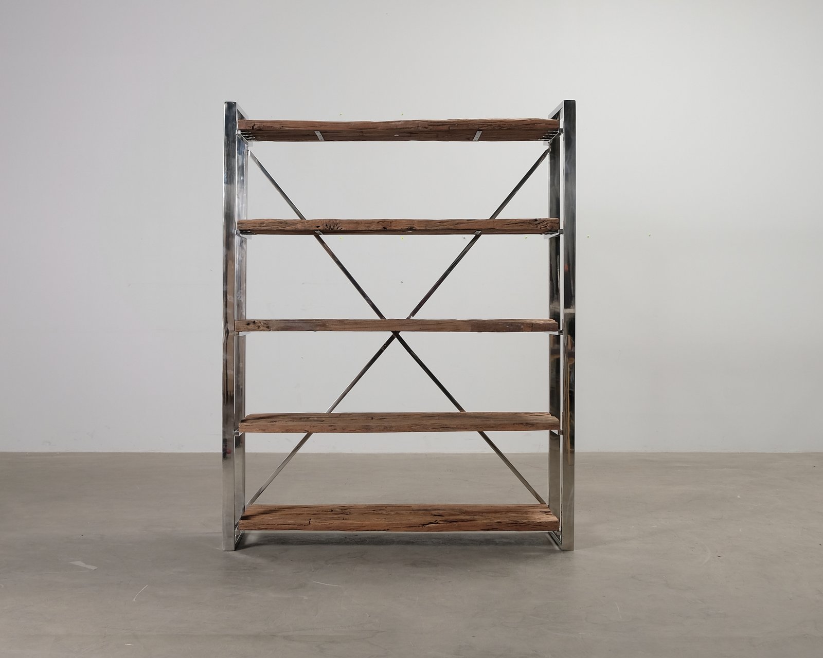 Kensington bokhylla från Richmond Interiors består av en kromad metallram och återvunnet trä, som tillsammans skapar ett rustikt och industriellt utseende. Bokhyllan är oanvänd, men har ett tillverkningsfel: dess delar har inte exakt rätt längd, vilket betyder att det kan finnas små mellanrum mellan ramen och hyllan, till exempel. Levereras monterad. Tung.