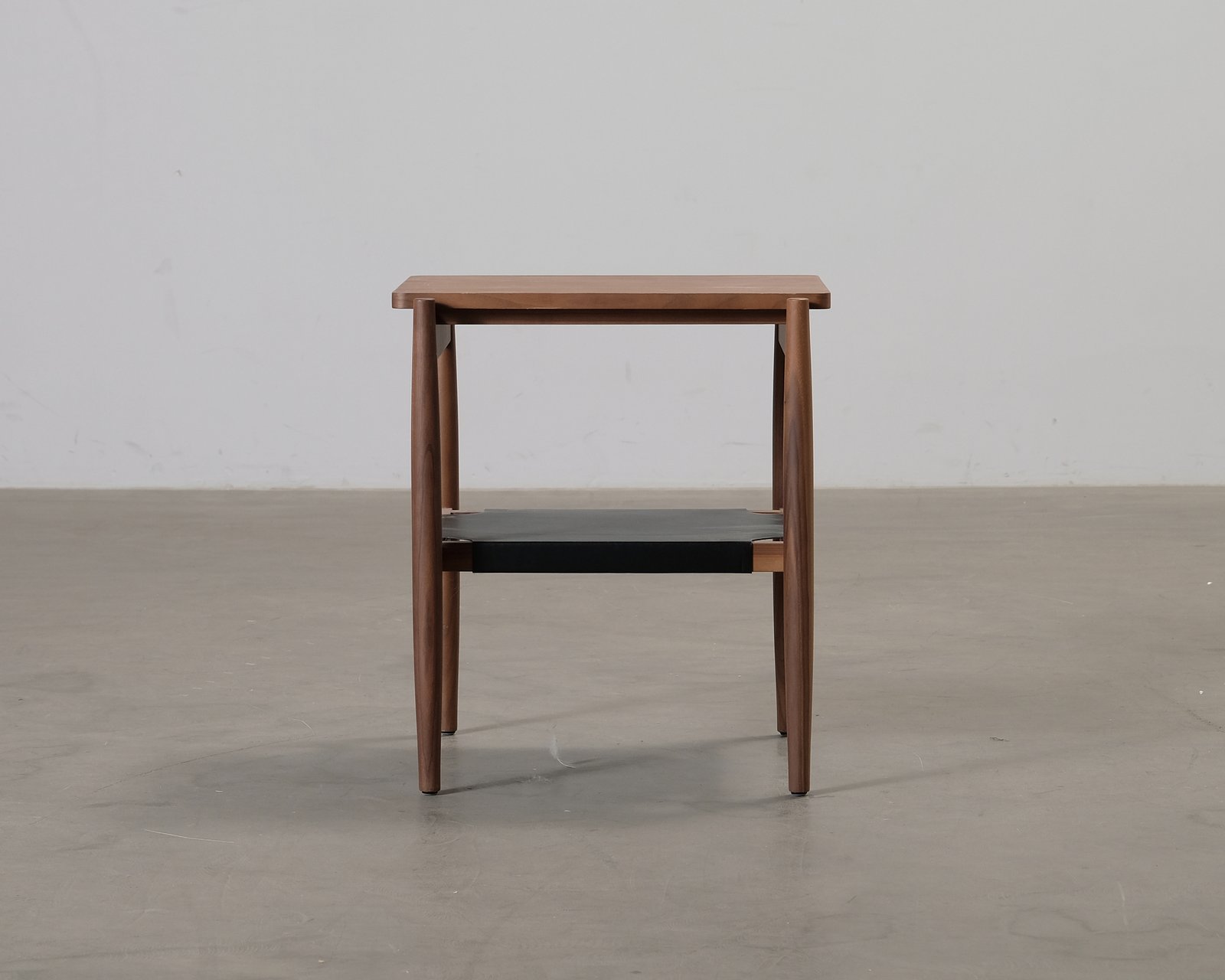 Det här vackra sidobordet i valnöt har en underdel i läder som en kontrast. Läder är ett naturligt material och patineras vackert med tiden. Jens Risom, som fått flera priser, är känd i USA som en särskild ambassadör för dansk design. Hans samarbete med Knoll gjorde Risom till en sann designsuperstjärna vars guldålder var i mitten av 1900-talet. Risom förblev trogen den danska designen under hela sitt liv och sin karriär. Hans möbler bygger på traditionella värden som skönhet och enkelhet. Repor på bordsskivan. Helhetsintrycket är bra.
