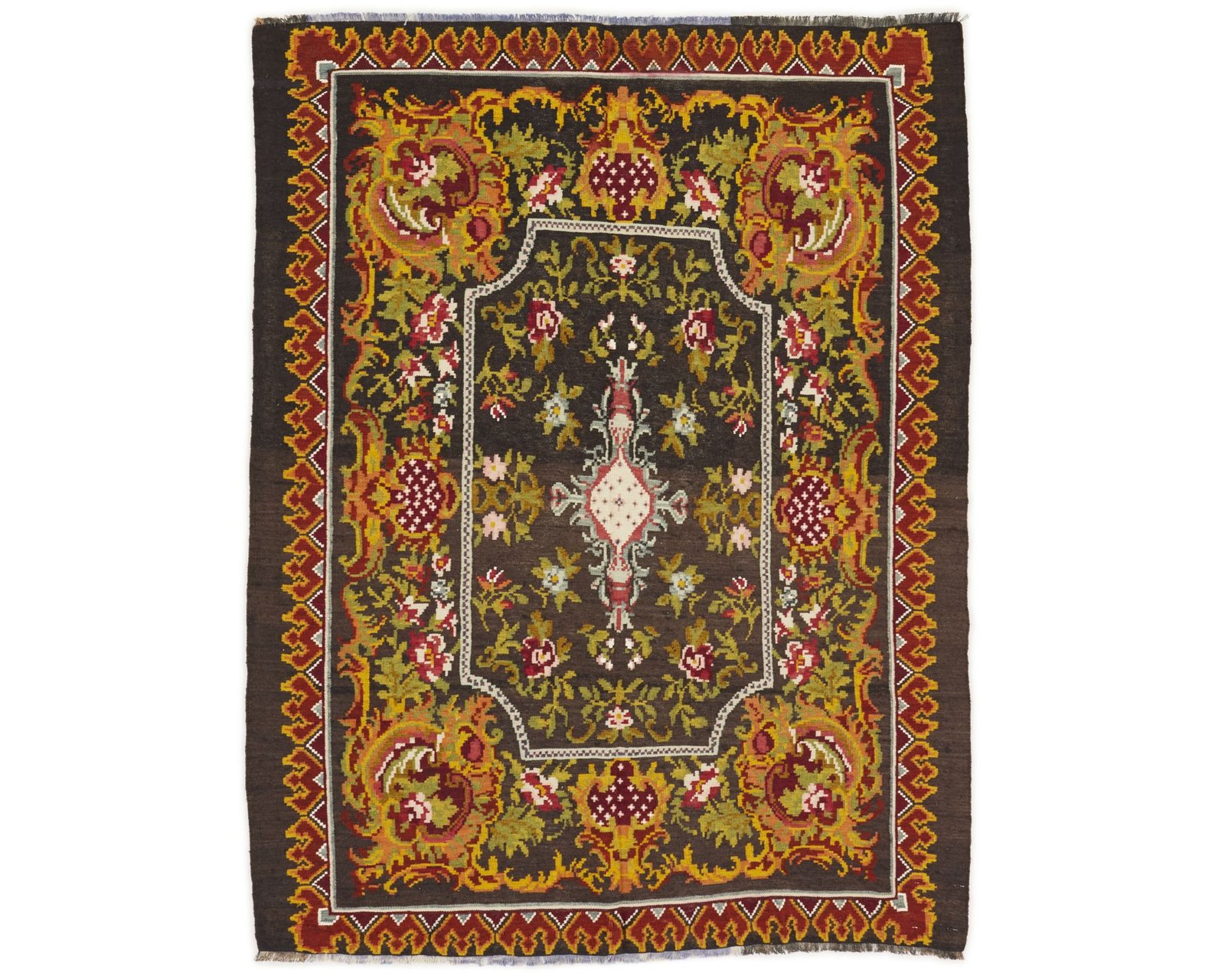 Rose Kelim-mattorna är handvävda ullmattor från Moldavien och norra Turkiet. De är tillverkade med en särskild slätvävsteknik som ger mattorna en tunn, filtliknande yta. Rose Kelim-mattorna är ofta äldre och relativt sällsynta, och kännetecknas av rika blommönster i starka färger mot en mörk bakgrund. Oanvänd.