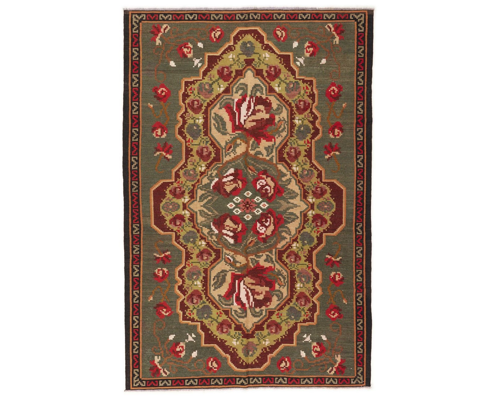 Rose Kelim-mattorna är handvävda ullmattor från Moldavien och norra Turkiet. De är tillverkade med en särskild slätvävsteknik som ger mattorna en tunn, filtliknande yta. Rose Kelim-mattorna är ofta äldre och relativt sällsynta, och kännetecknas av rika blommönster i starka färger mot en mörk bakgrund. Oanvänd.